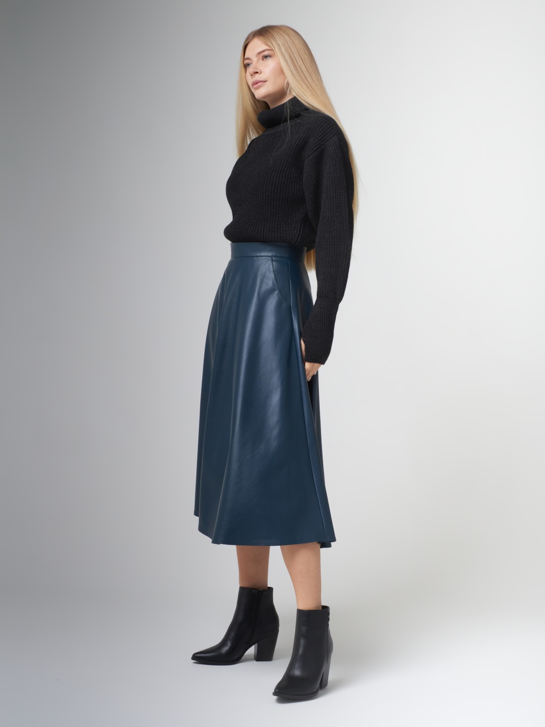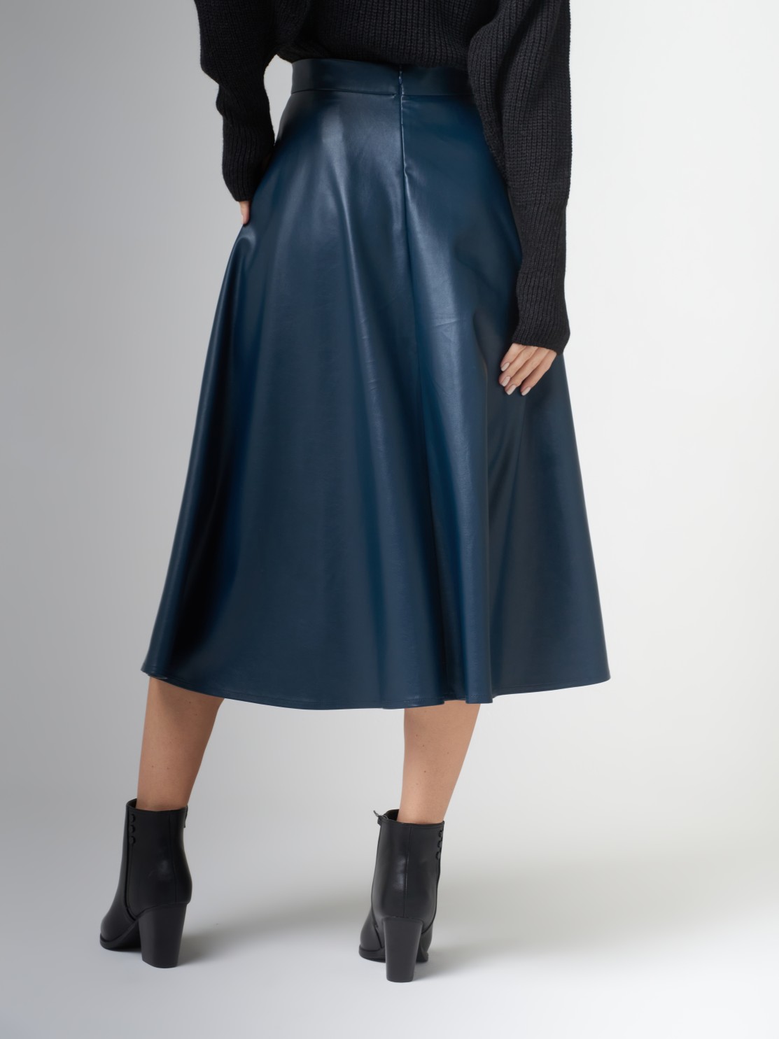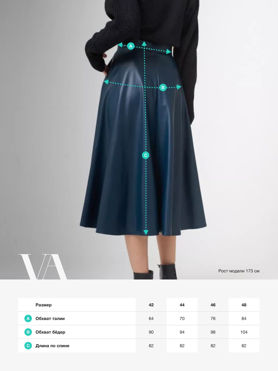 Очень красивая, качественная юбка с подкладкой. Цвет темно-синий. Материал тонкий, но мягкий и вполне напоминает натуральную кожу.