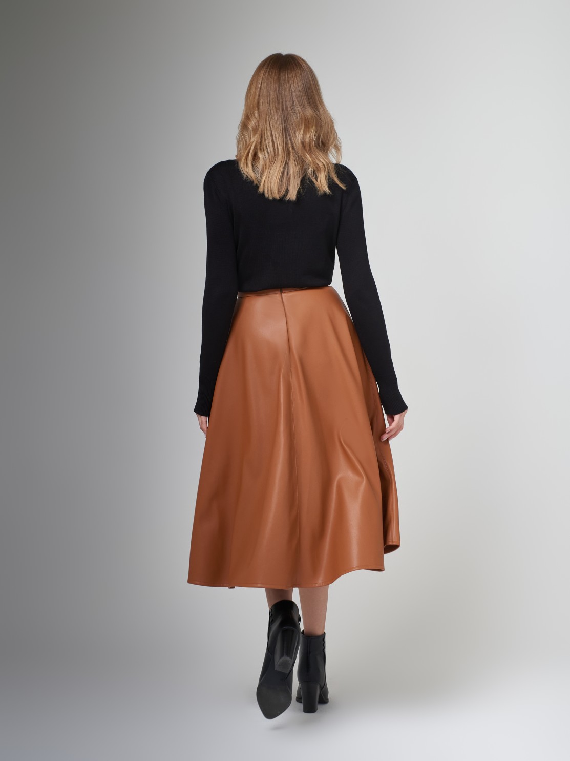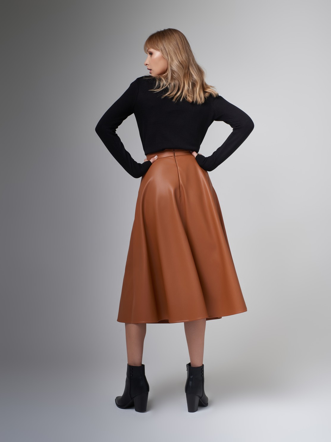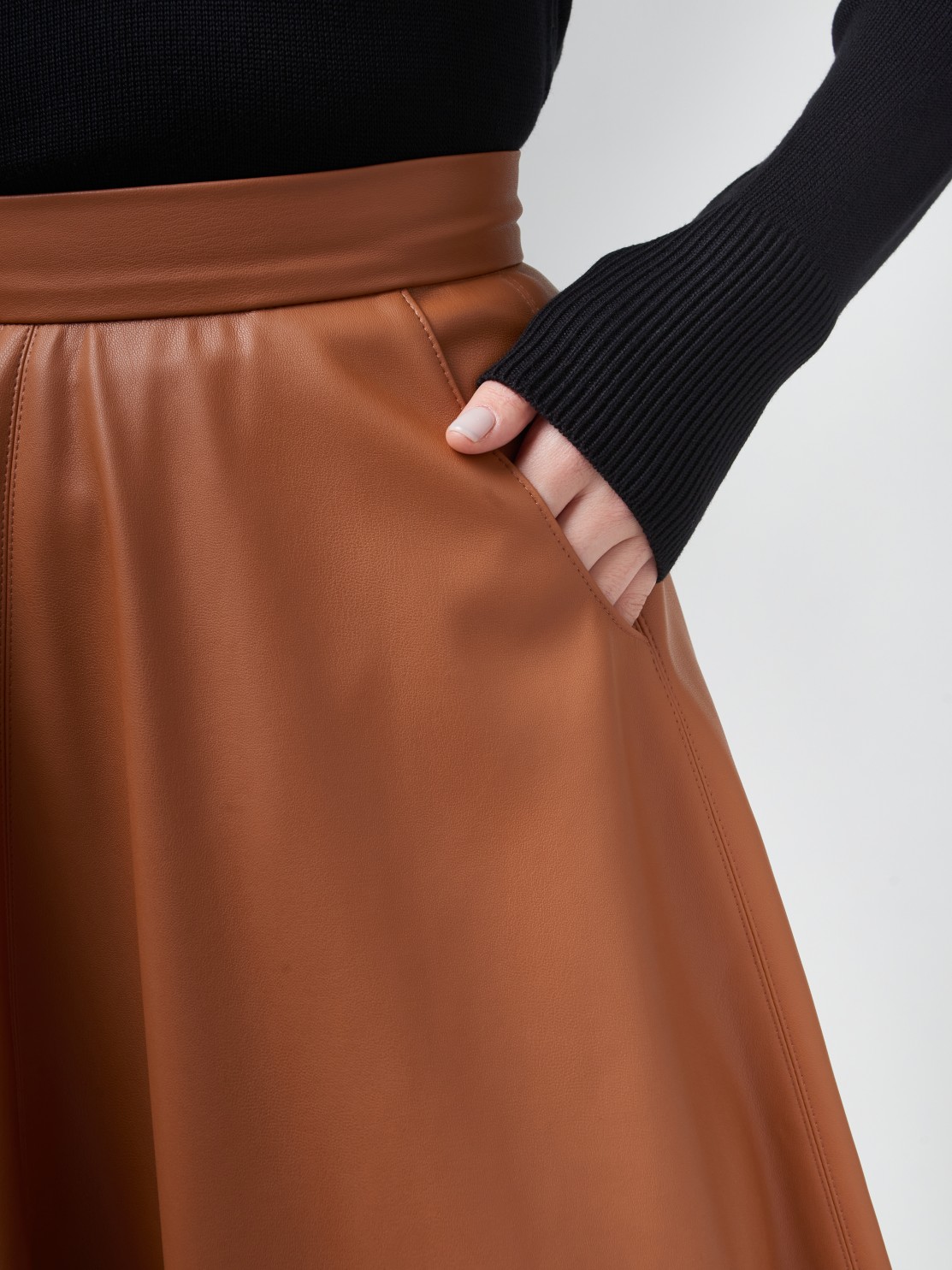 Очень красивая, качественная юбка с подкладкой. Цвет темно-синий. Материал тонкий, но мягкий и вполне напоминает натуральную кожу.