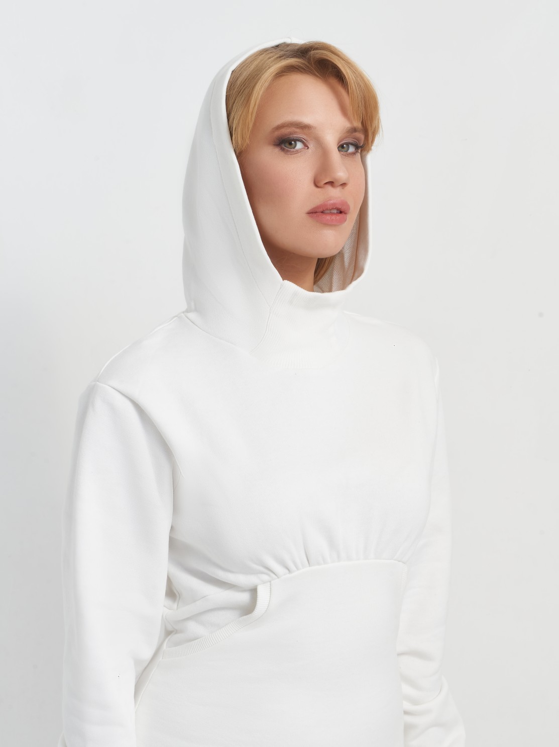 42 - обхват груди 84 см, обхват по талии 64 см, обхват бедер 90 см, ширина плеча 15 см, длина рукава с манжетой 62 см, длина изделия по спинке от горловины 116 см.