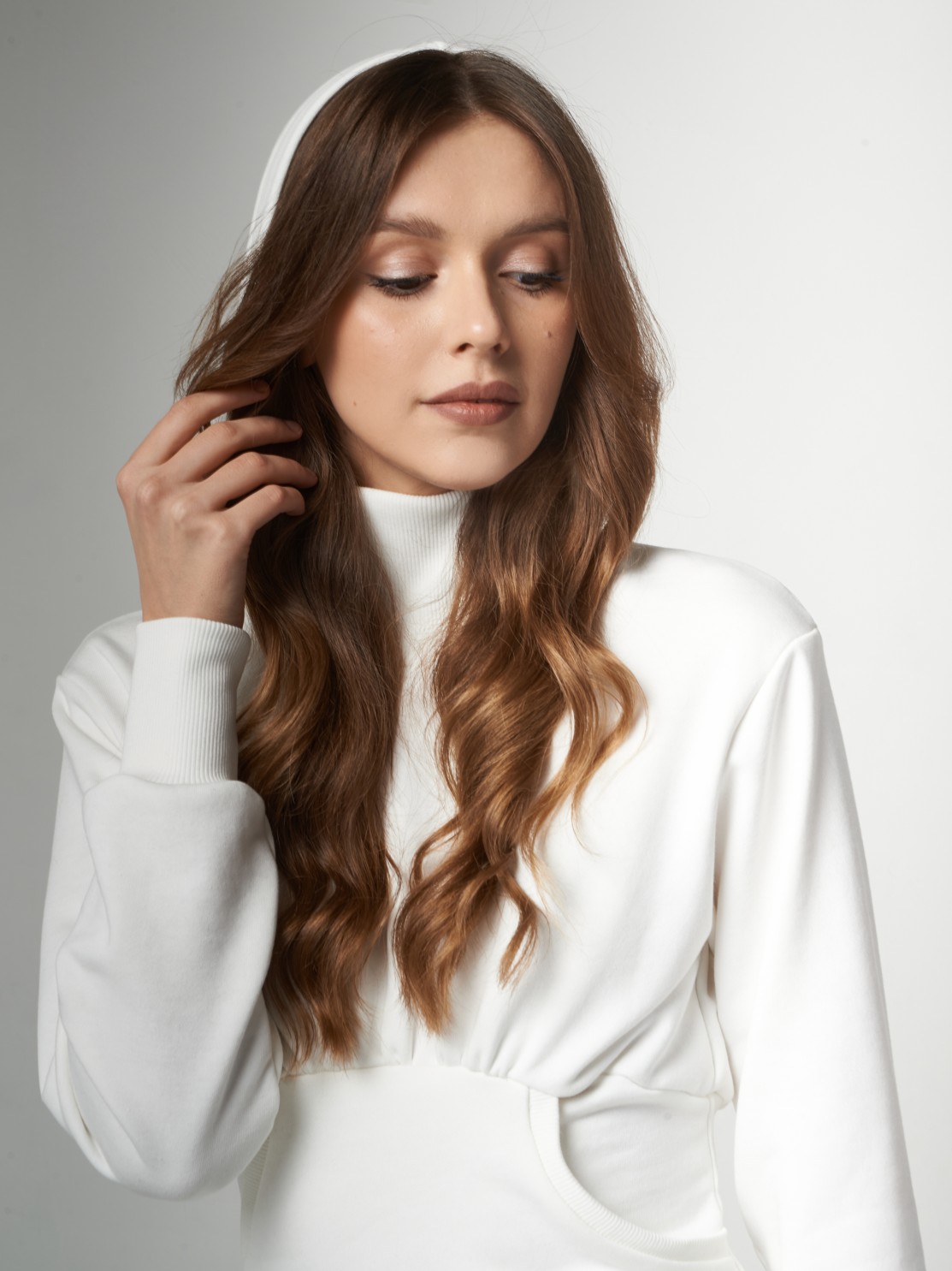 44 - обхват груди 88 см, обхват по талии 70 см, обхват бедер 94 см, ширина плеча 15,2 см, длина рукава с манжетой 62 см, длина изделия по спинке от горловины 116 см.