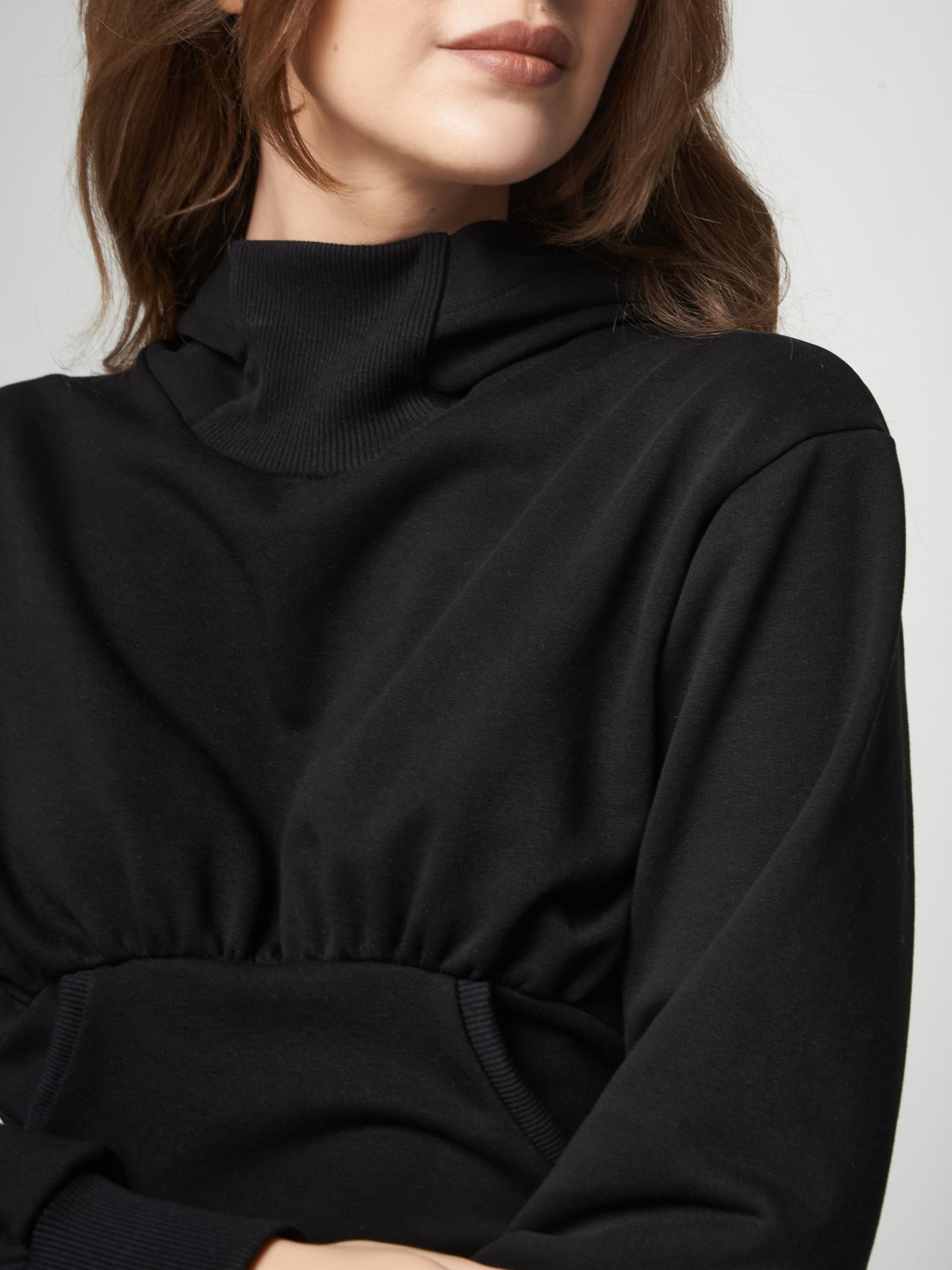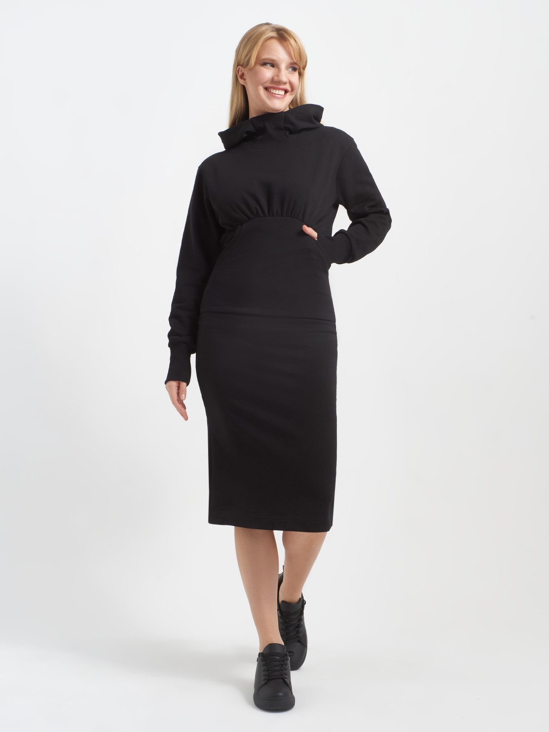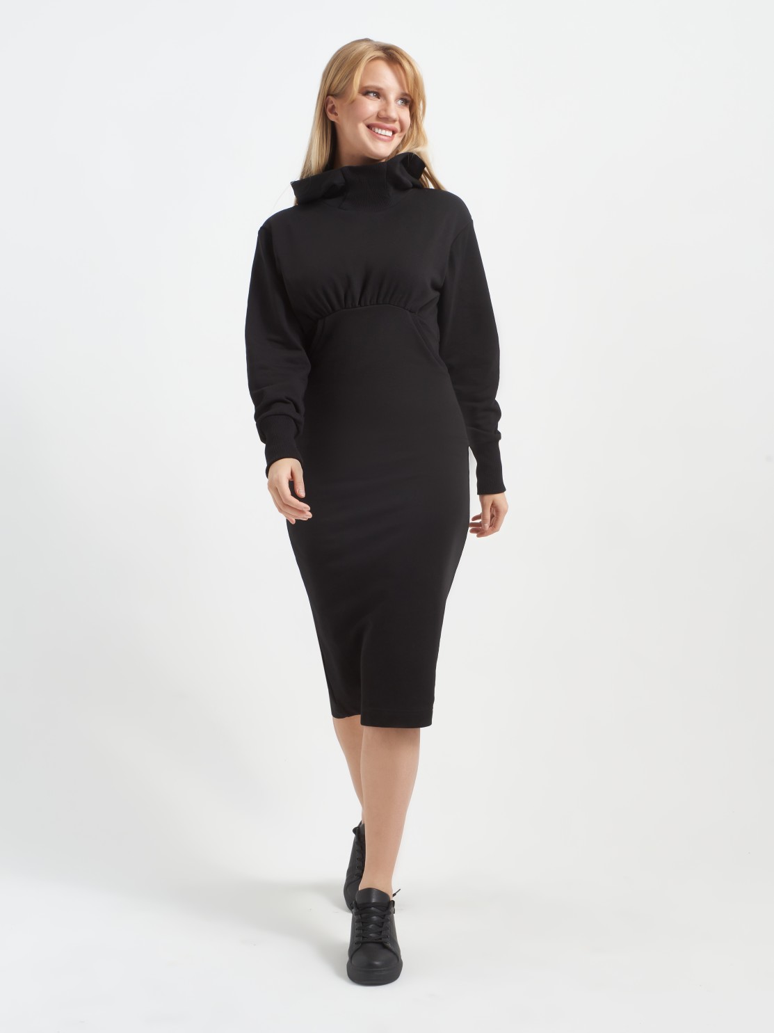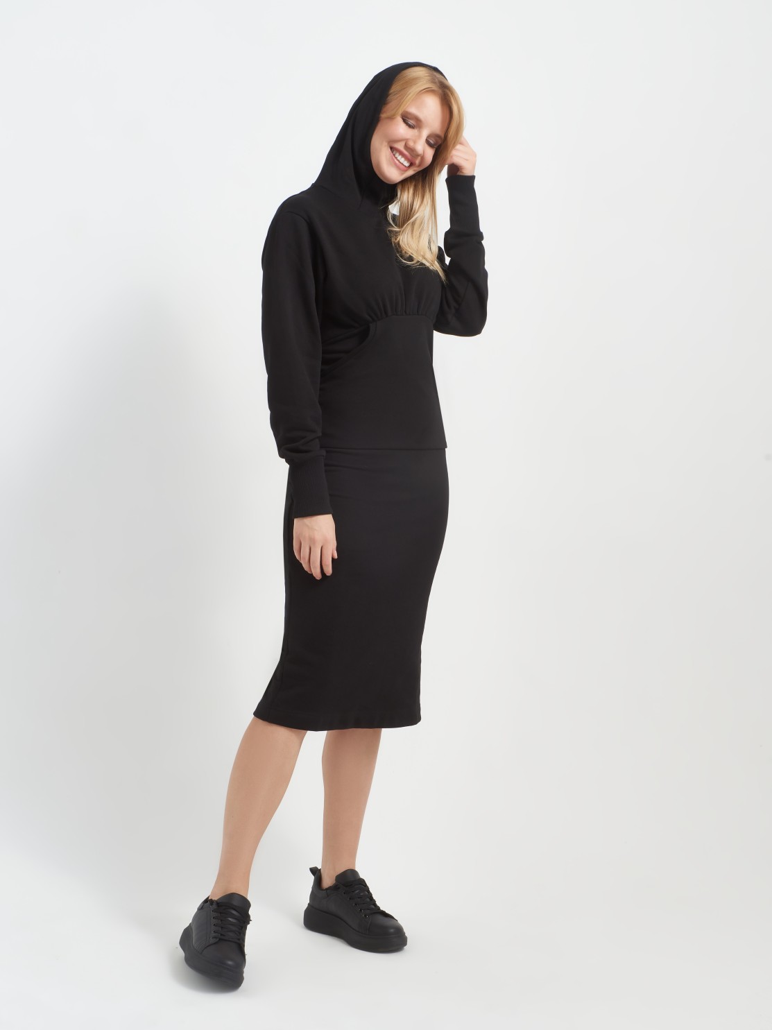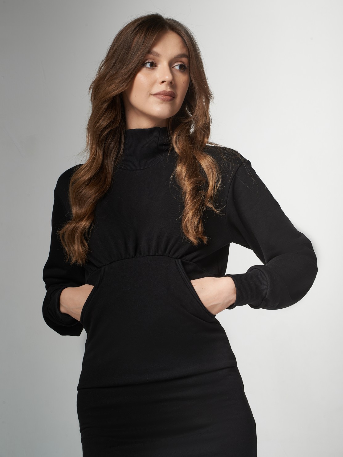 42 - обхват груди 84 см, обхват по талии 64 см, обхват бедер 90 см, ширина плеча 15 см, длина рукава с манжетой 62 см, длина изделия по спинке от горловины 116 см.