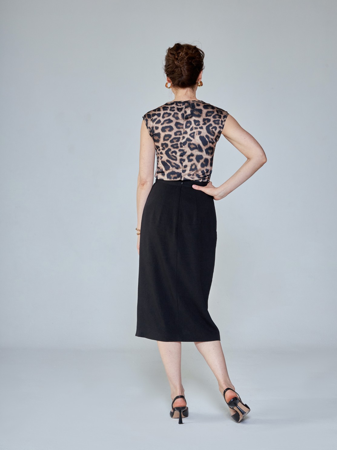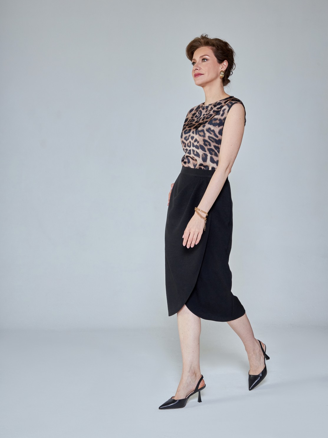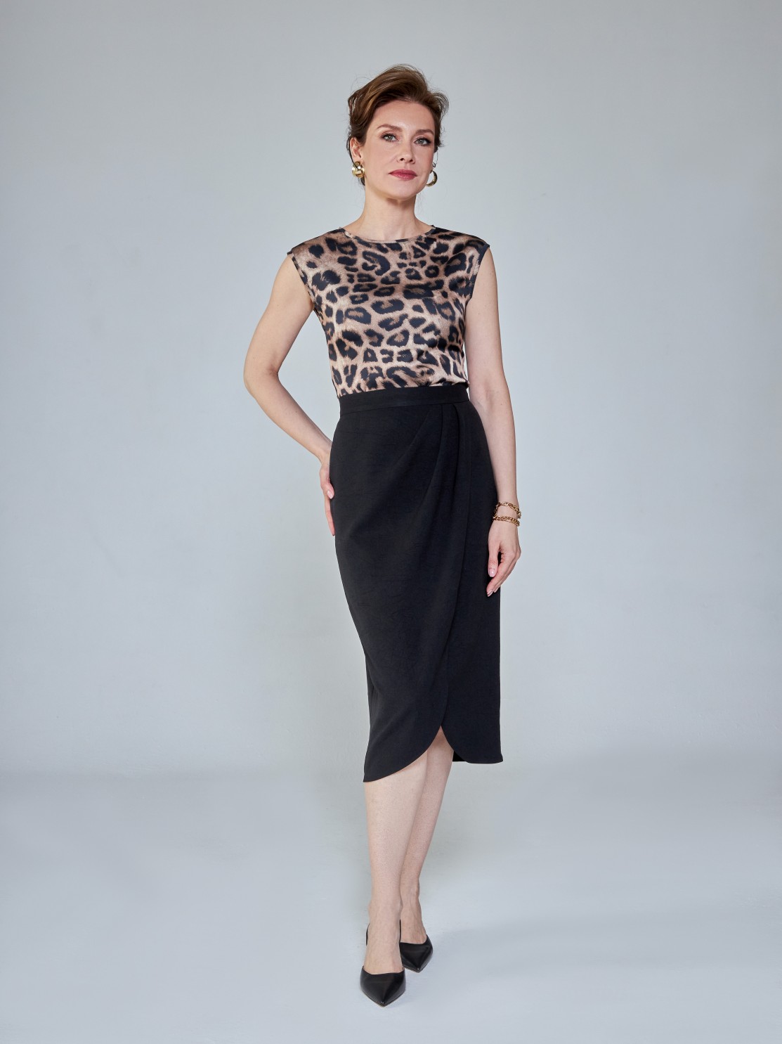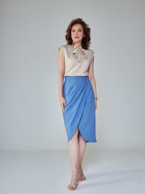 Базовая юбка-миди на запах с идеальной посадкой. Драпировка спереди скрывает несовершенства. Застёжка на потайную молнию в среднем шве не портит силуэт. Тонкая подкладка и немнущаяся ткань отвечают за ваш совершенный вид в течении рабочего дня.
