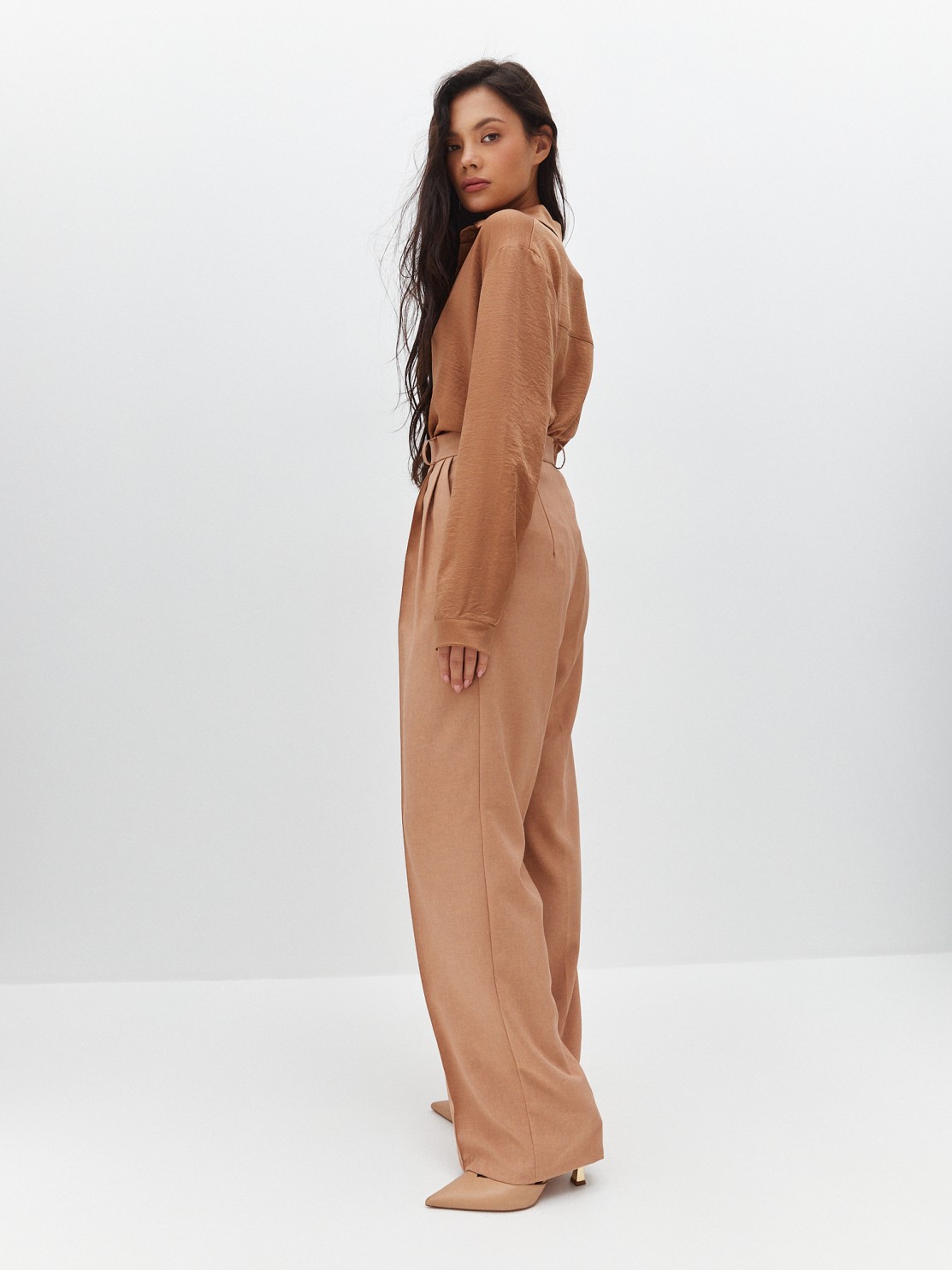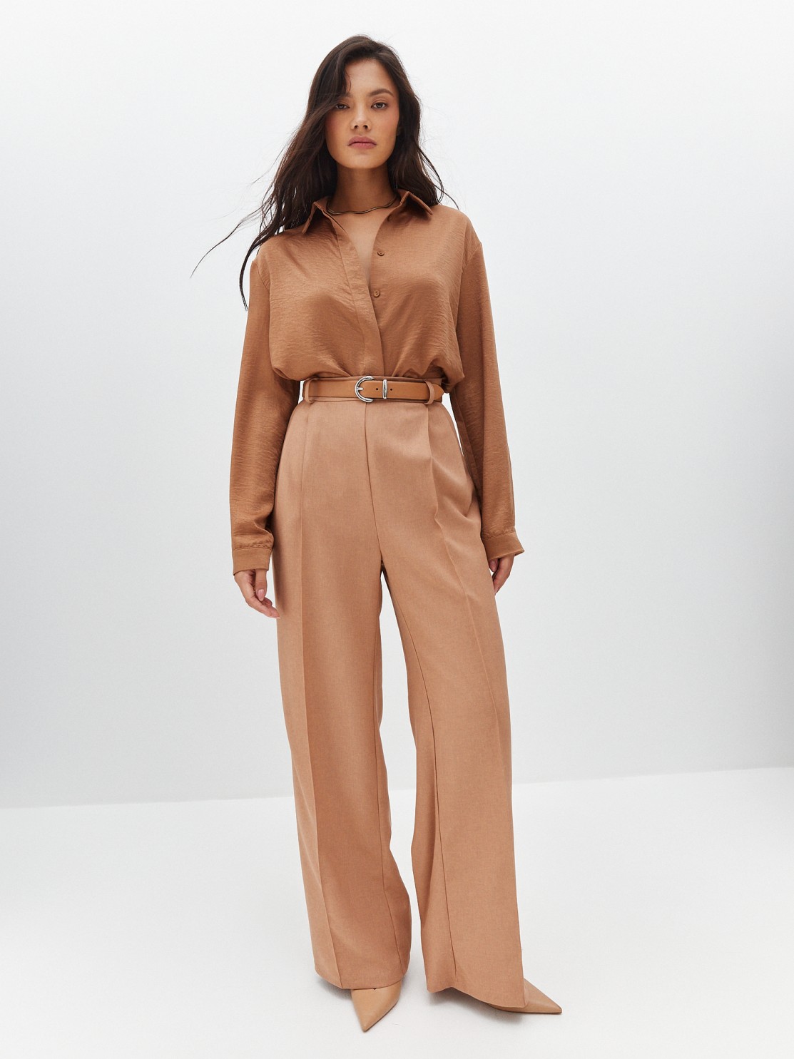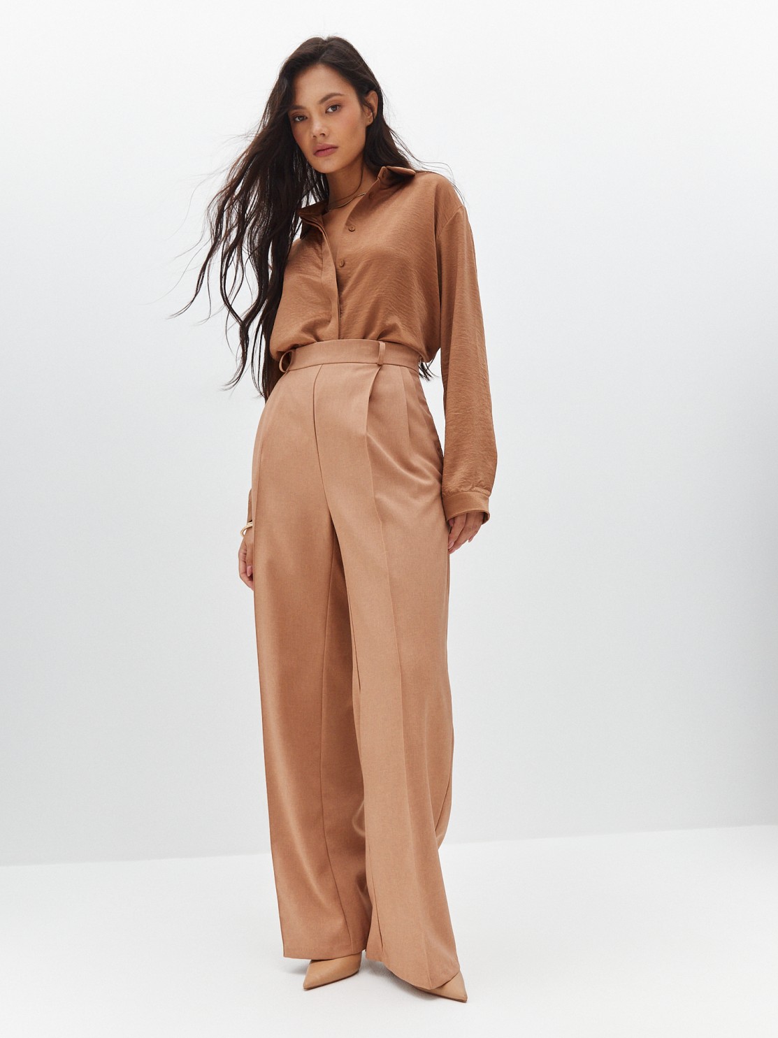 Отличные брюки! Очень красивый сине-голубой цвет. Благородно и изысканно! Покупала такие палаццо синии "зимний" вариант, очень обрадовалась, когда увидела сшитые по тем же лекалам летние брюки с хорошим составом ткани (хлопок и лен). И в офис, и на вечернюю прогулку, везде будут смотреться на пять баллов! Спасибо!