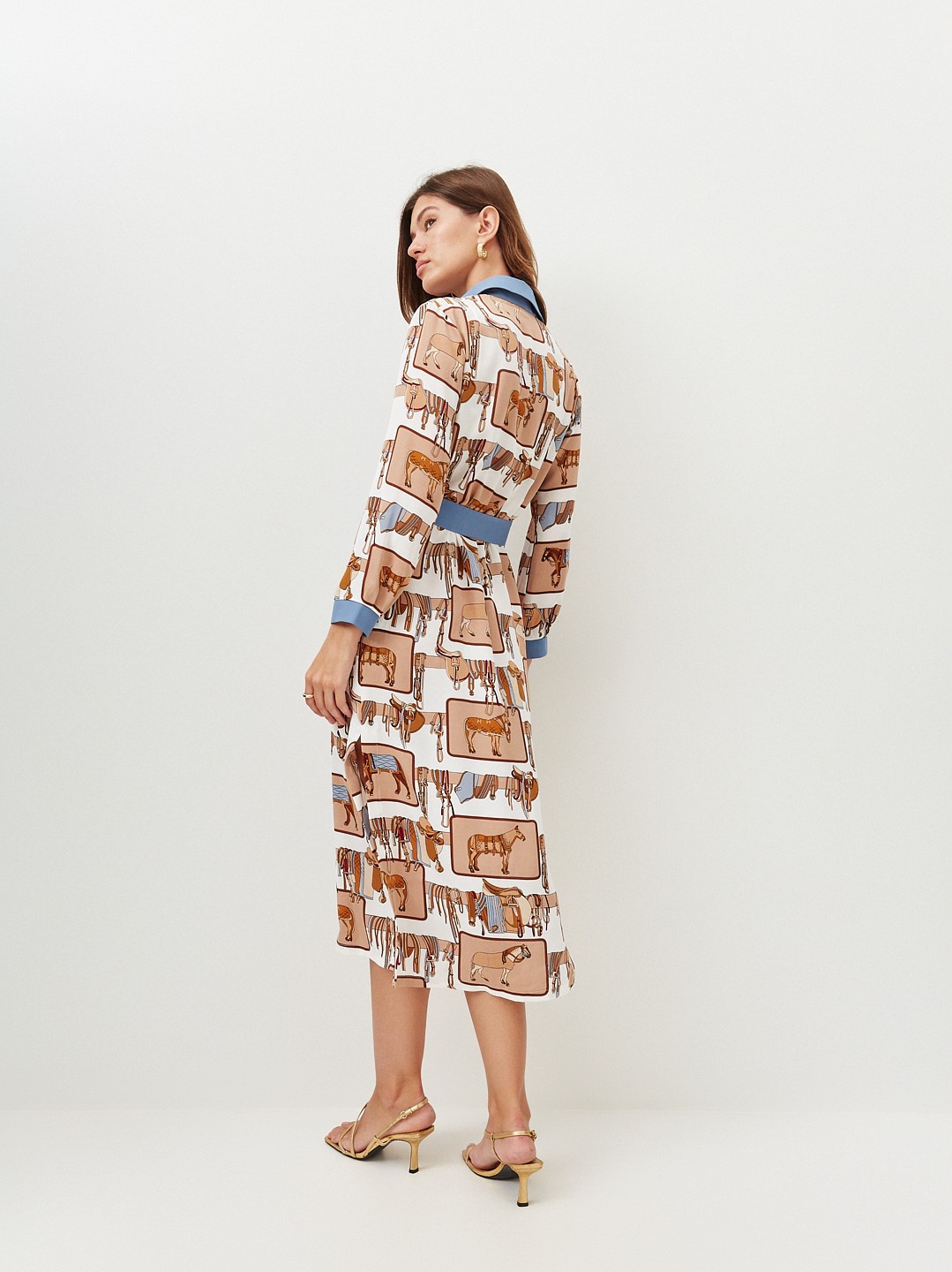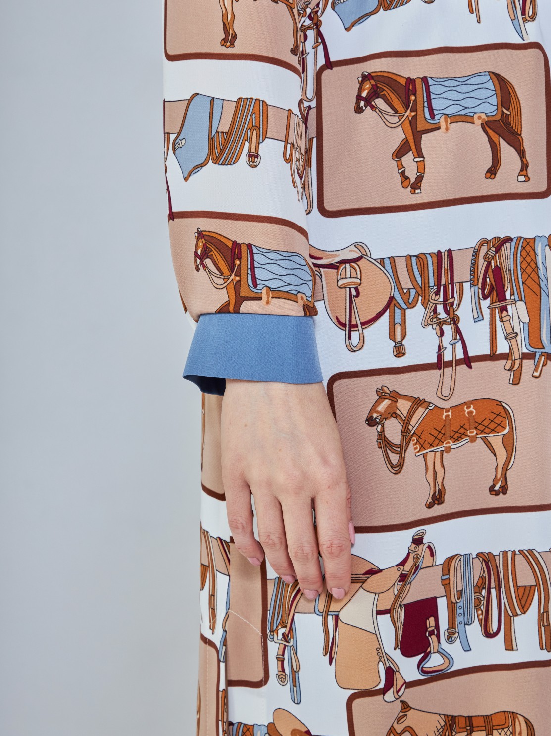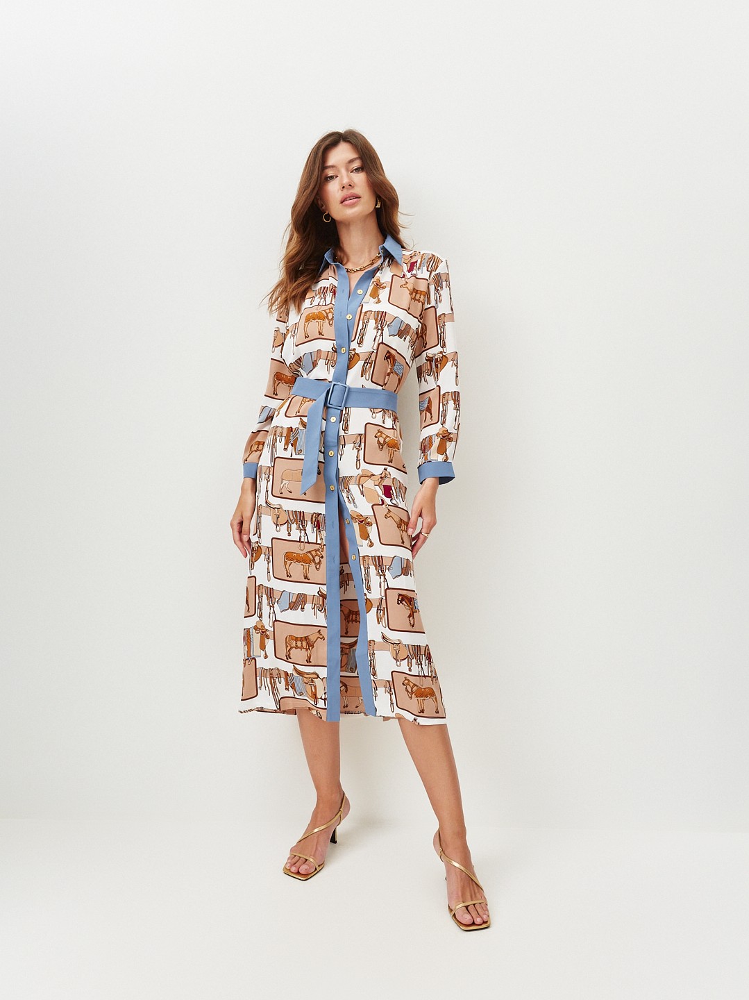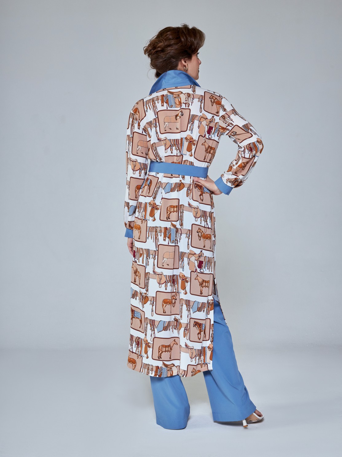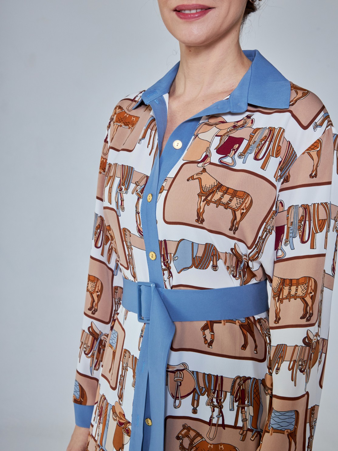 Удлинённое платье-рубашка со стильным принтом. В комплекте есть пояс, застёгивается спереди на пуговицы. Такой фасон выгодно подчёркивает фигуру и даёт простор для модных фантазий. Носите его как эффектное платье, полностью расстёгнутым, как лёгкий кардиган, или вместе с