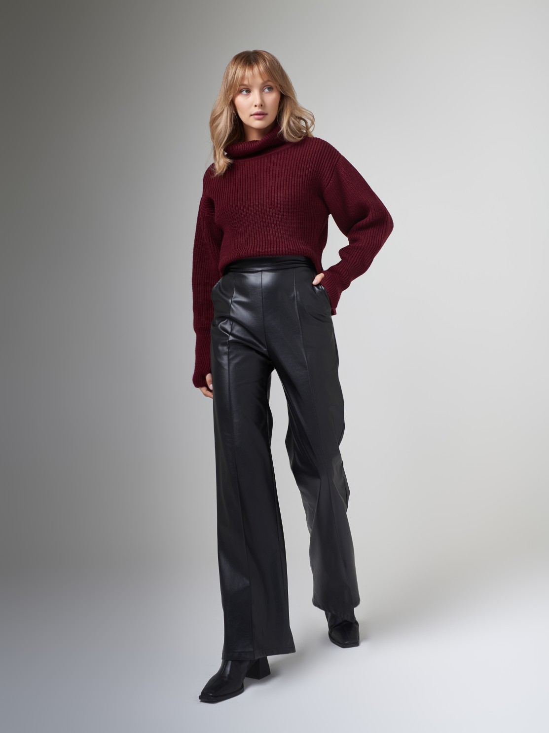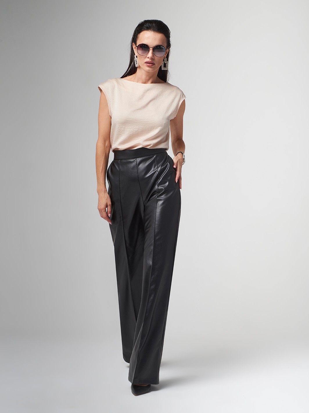Брюки из эко-кожи выше всех похвал) смотрятся дорого, удобные, сшиты качественно.