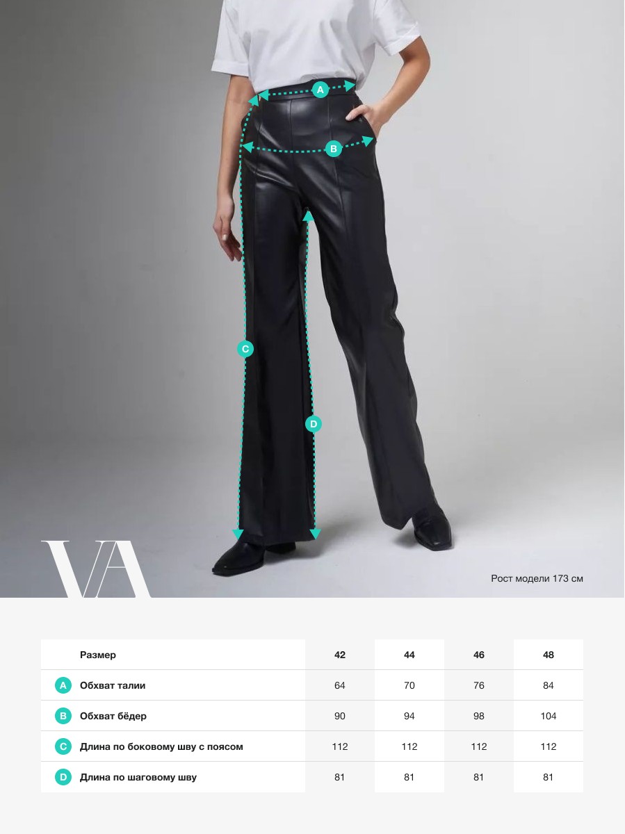 Сама эко-кожа приятная на ощупь, штаны сели по фигуре, размерной сетке соответствуют.