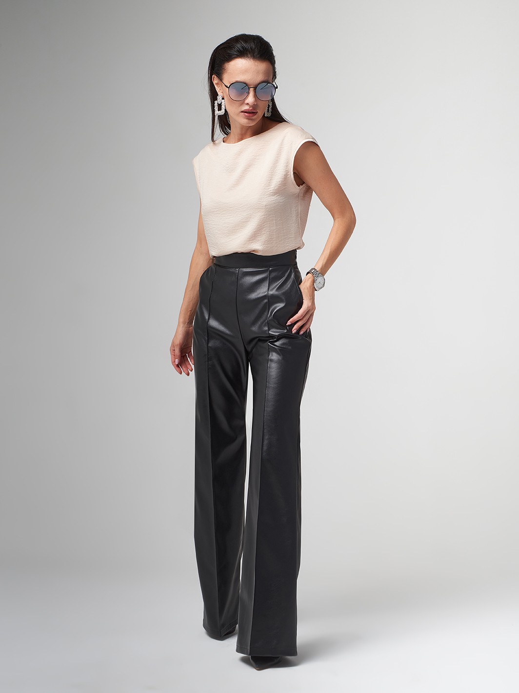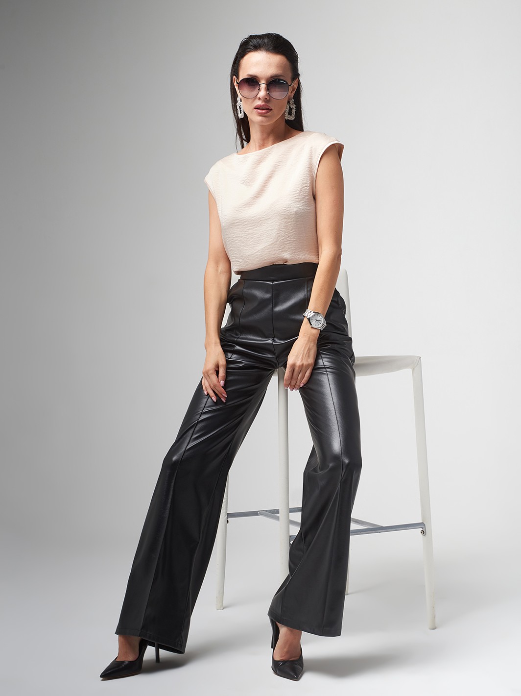 Нашла крутые брюки из эко-кожи , подобрала под них рубашку и получилось очень красиво.