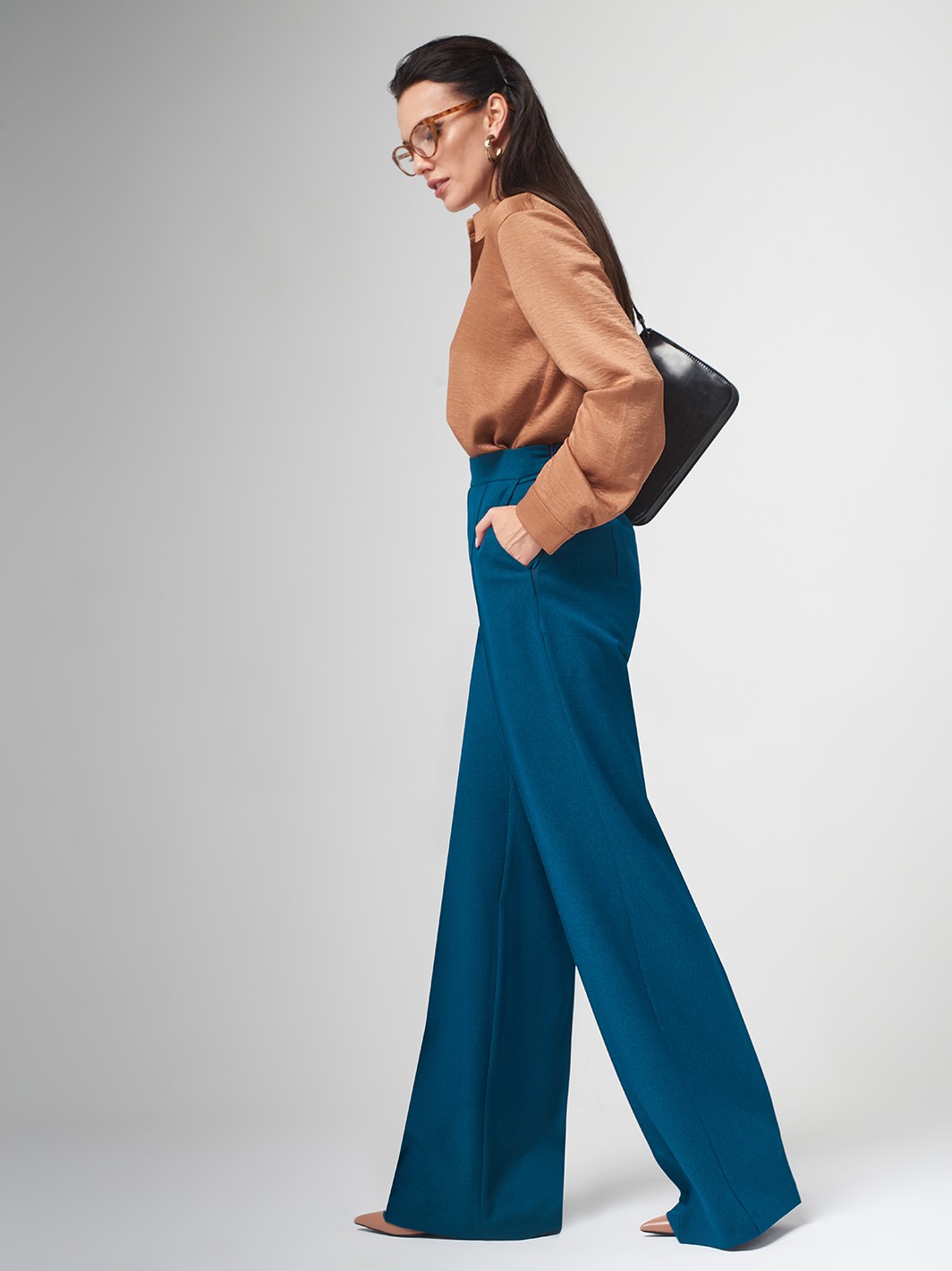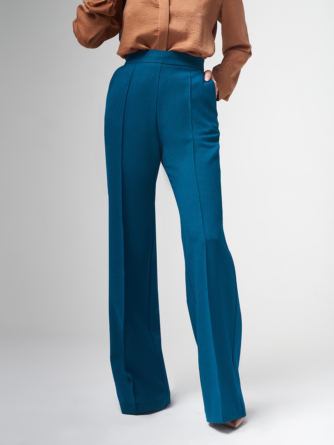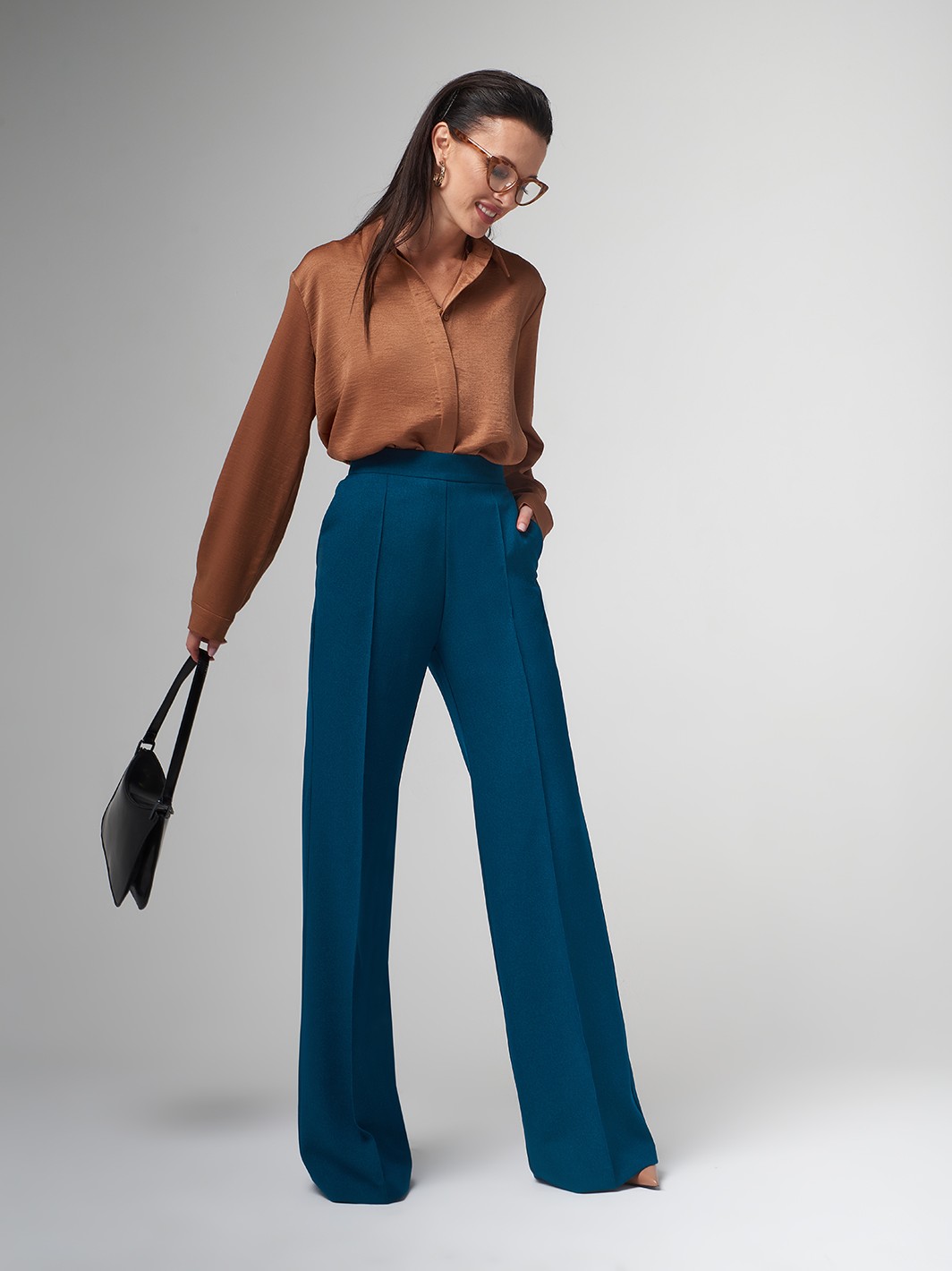 Брюки отличные, на рост 175 не короткие, даже с каблуком носить можно! С молочной рубашкой карамельный цвет хорошо сочетается