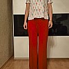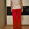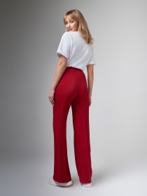 Хорошие брючки, насыщенный красный цвет, ровные строчки , материал не просвечивает.