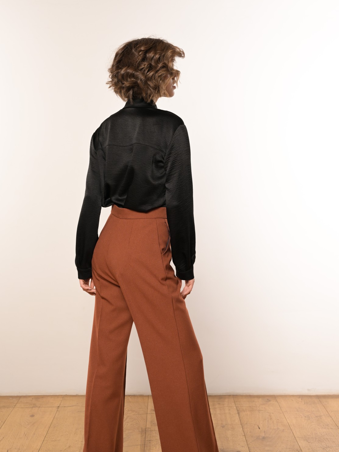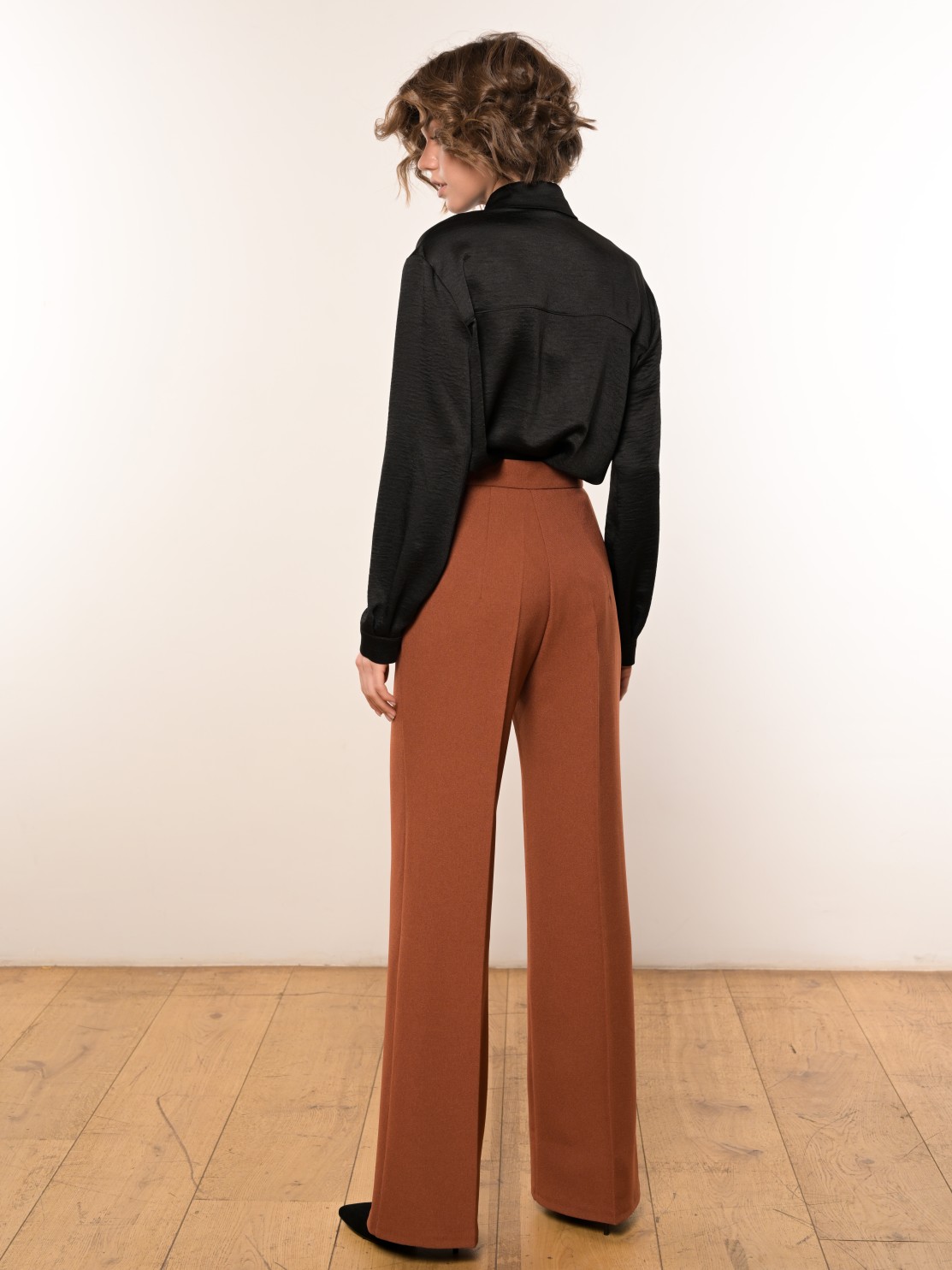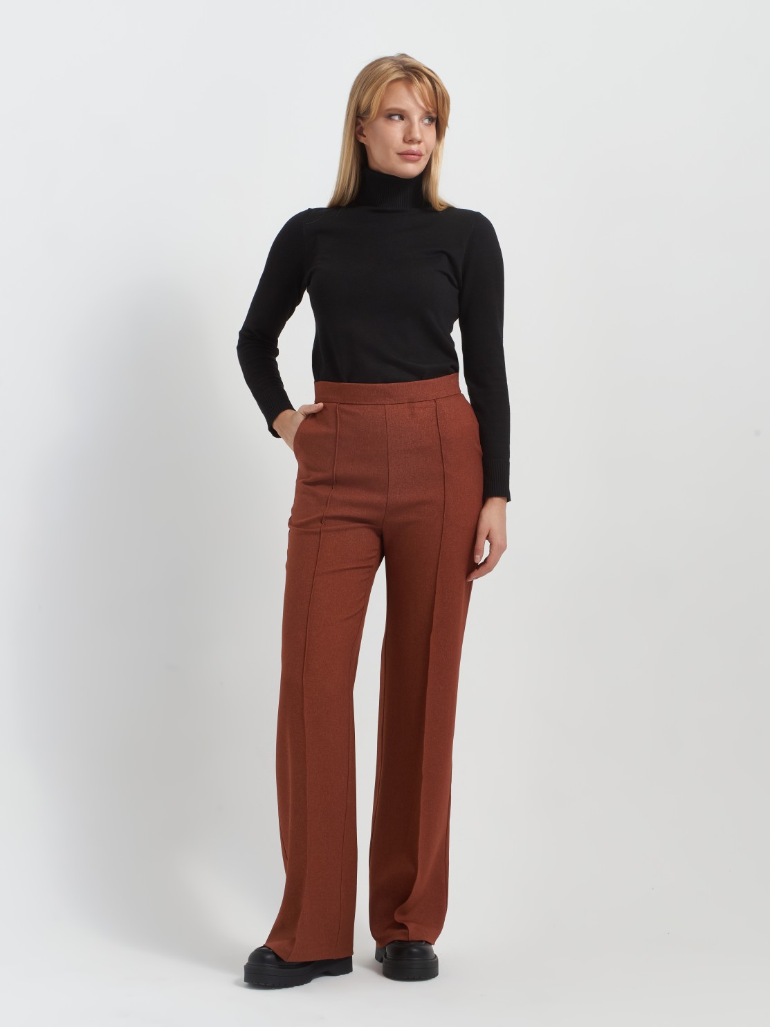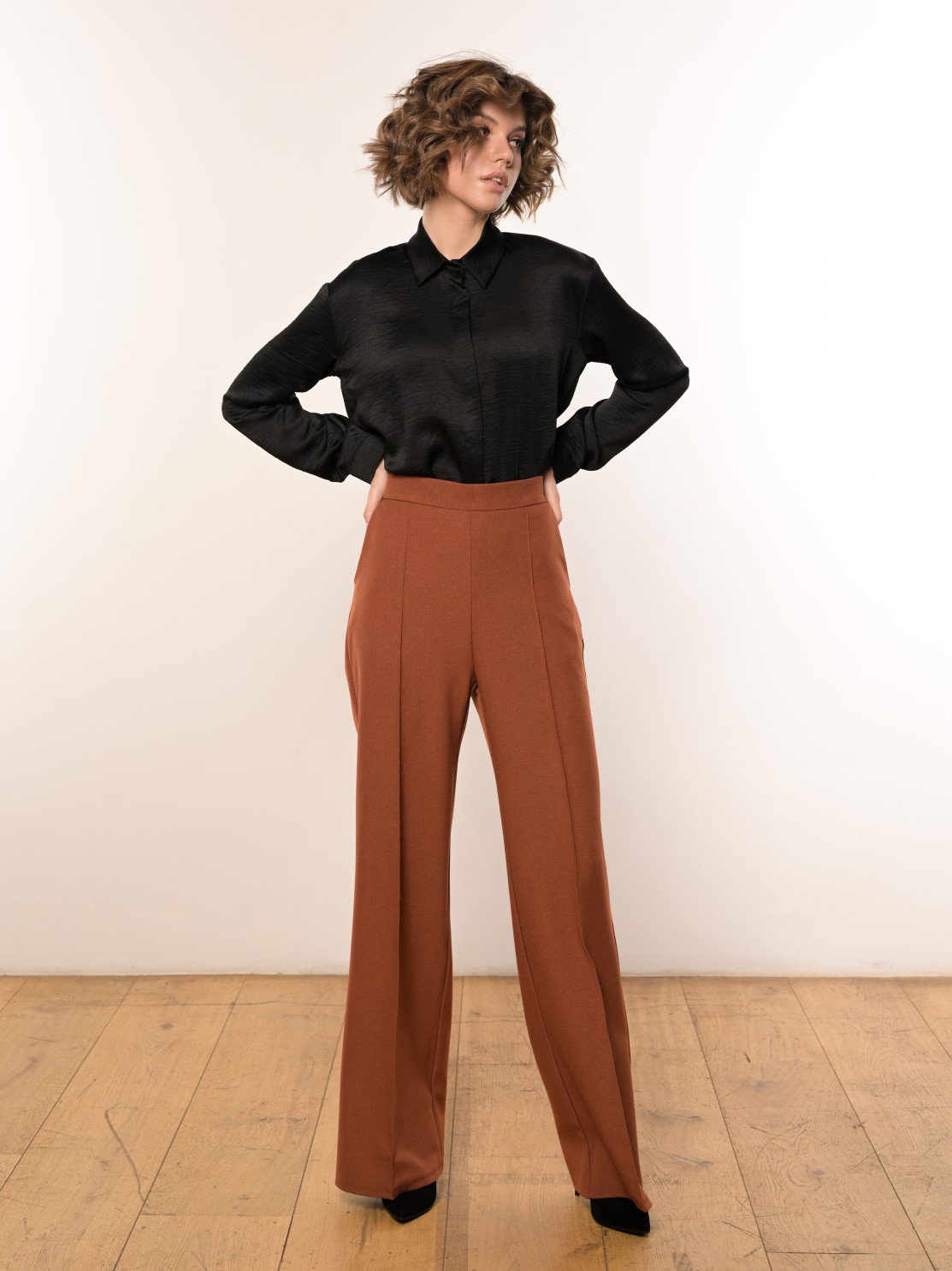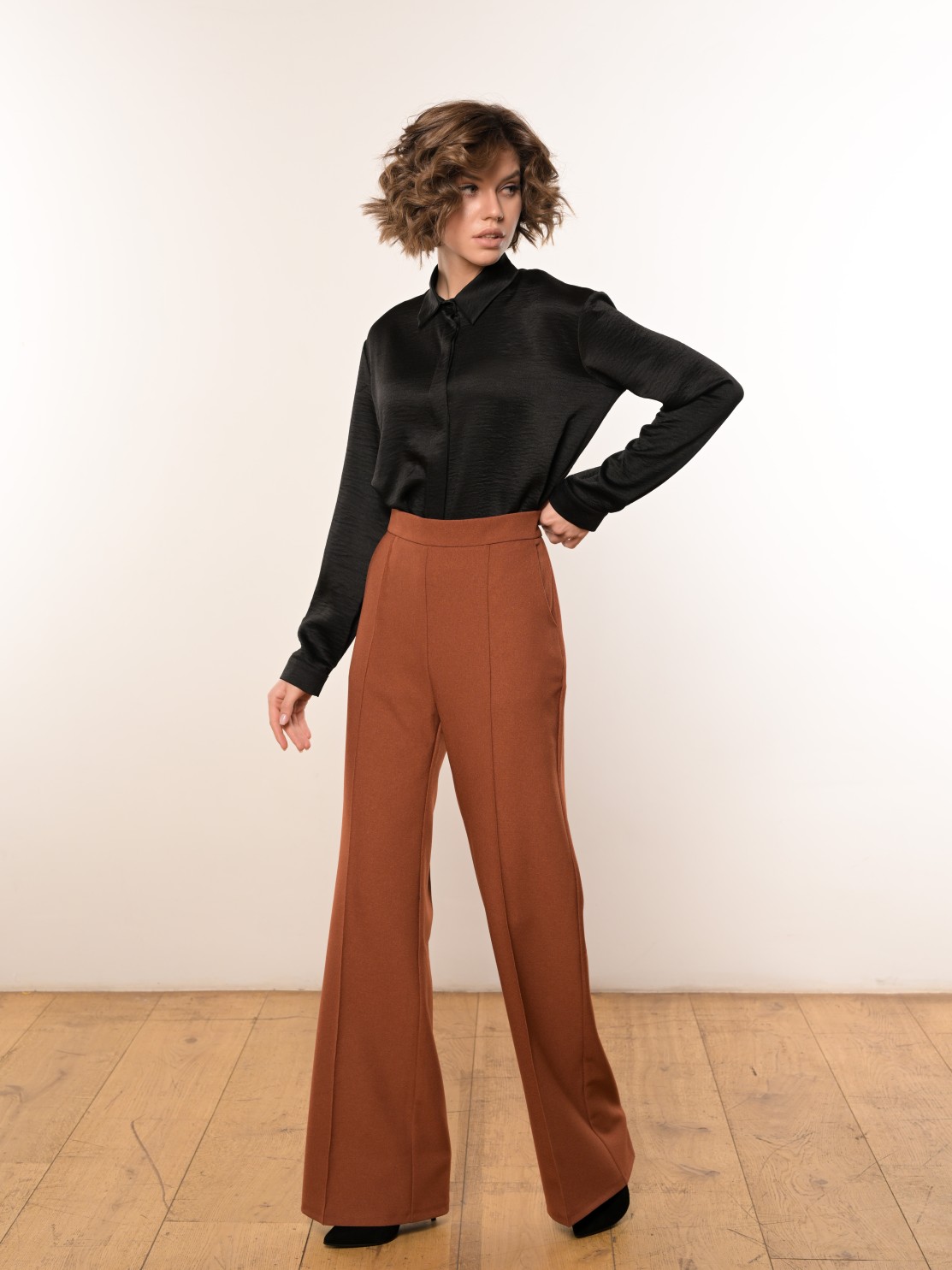 Брюки отличные, на рост 175 не короткие, даже с каблуком носить можно! С молочной рубашкой карамельный цвет хорошо сочетается