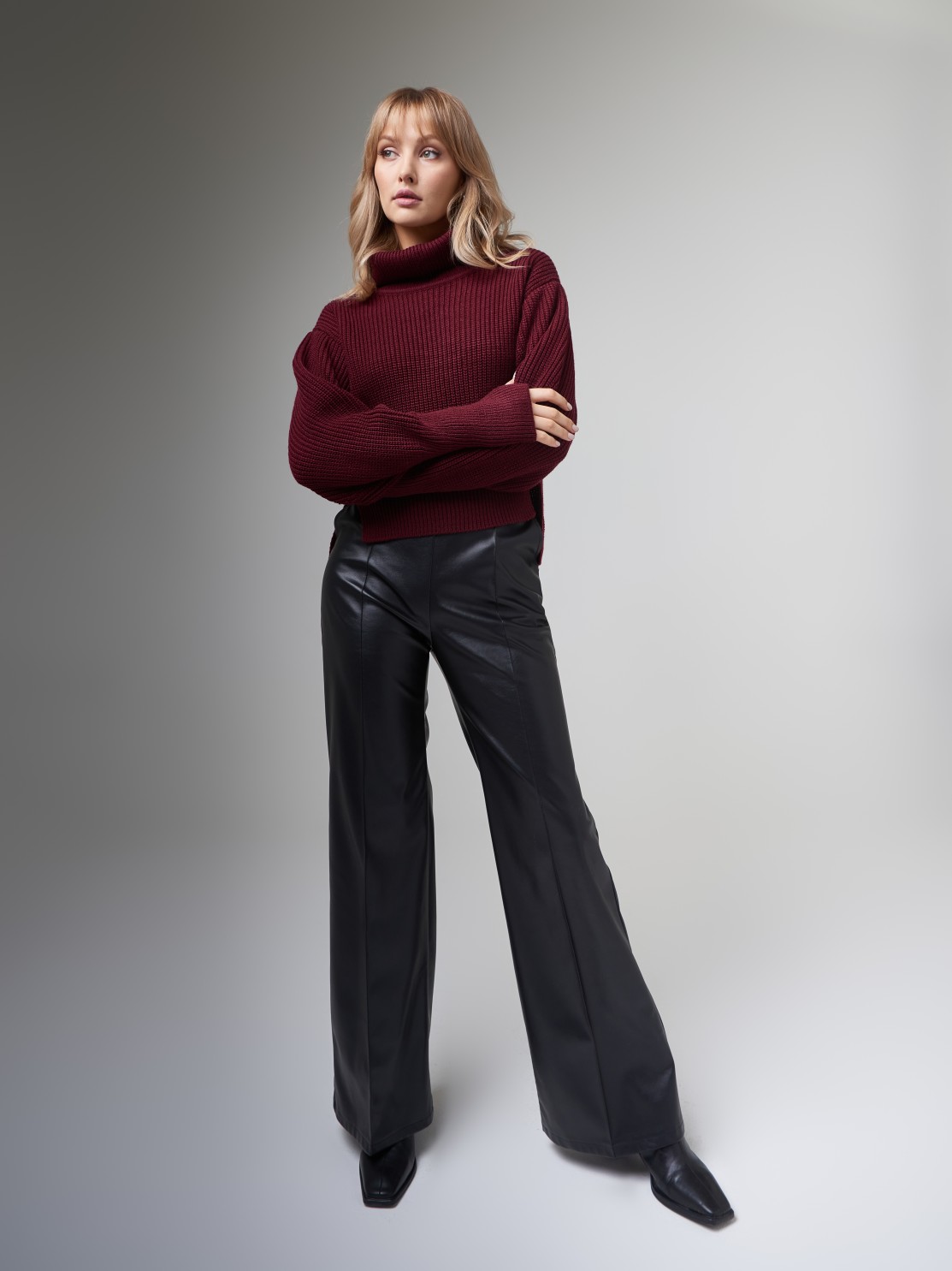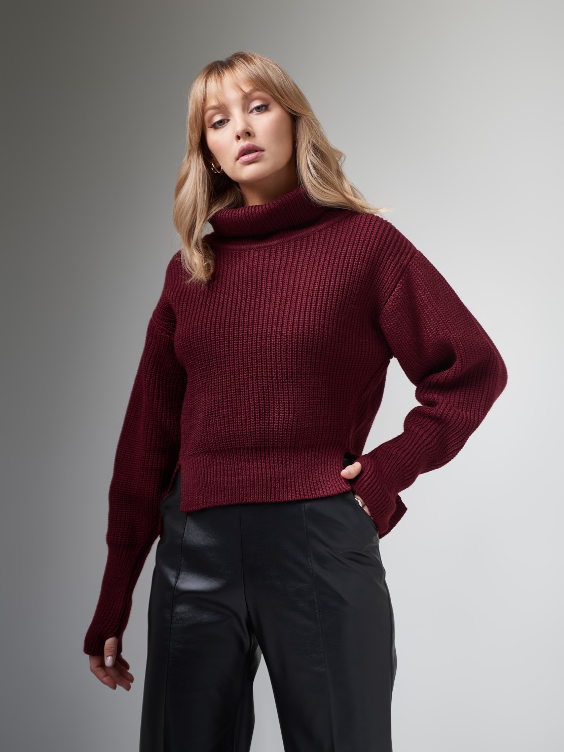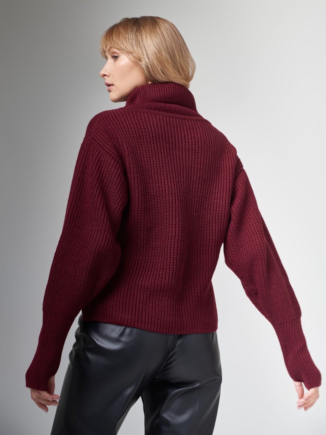 Стильный джемпер плотной вязки связан нашими мастерами с добавлением шерсти. Объёмный ворот не даст тебе замёрзнуть, широкие рукава добавят в твой образ элегантности. Отлично сочетается с брюками, юбками и платьями.