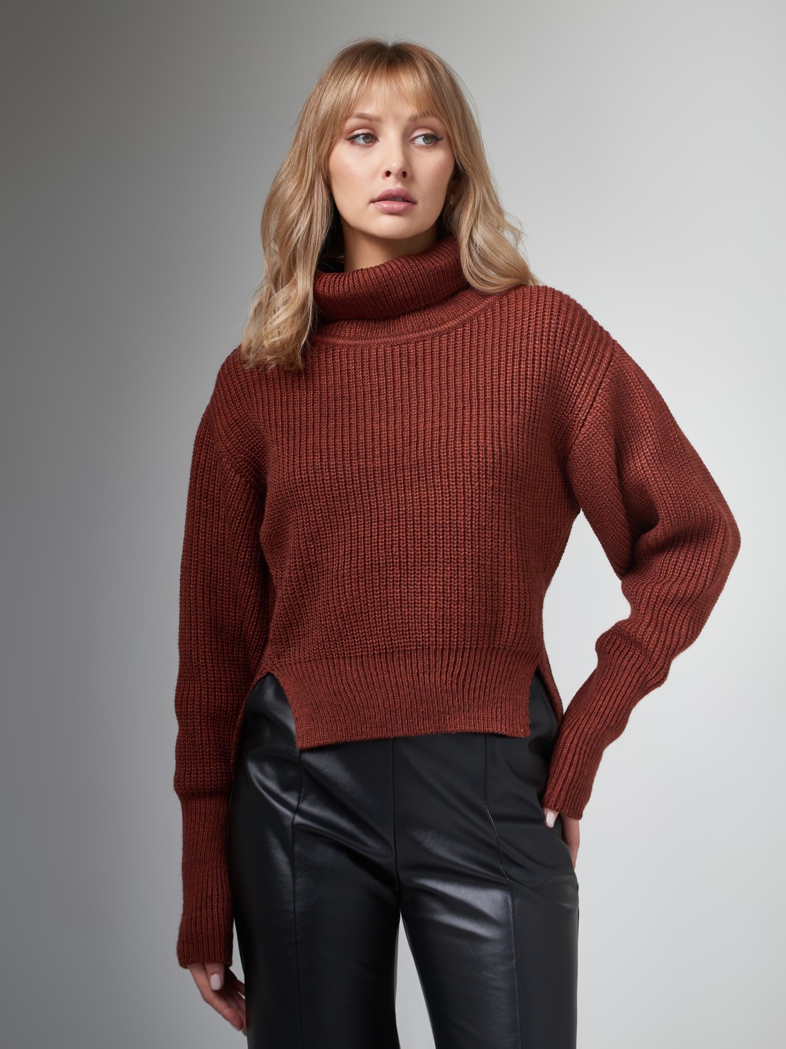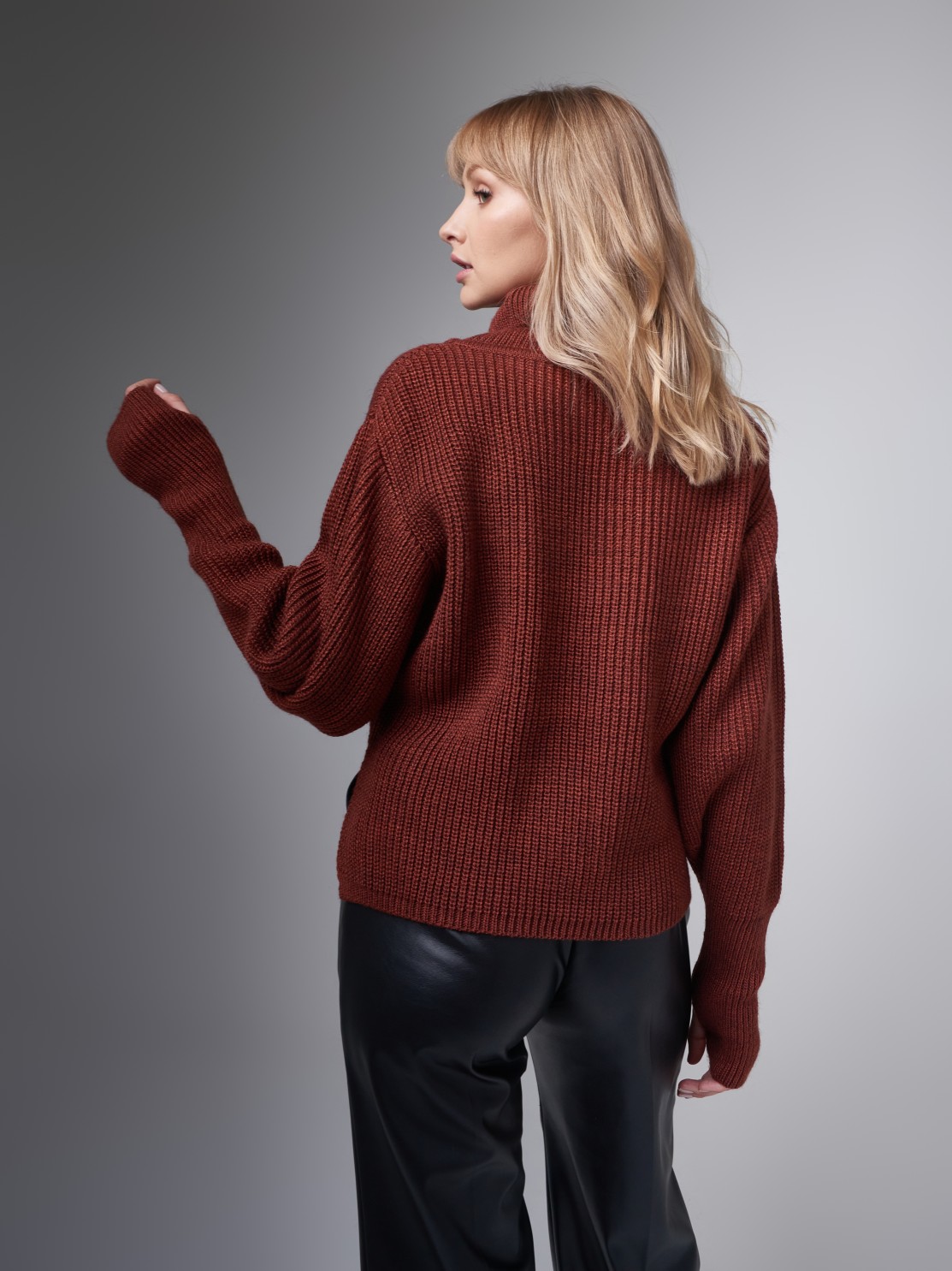 Свитер показался коротким сначала, но в этом есть изюм) Ношу с удовольствием. На свой верх 44-46, рост 176 взяла 46-48р. Цвет очень красивый наяву. Спасибо большое производителю!
