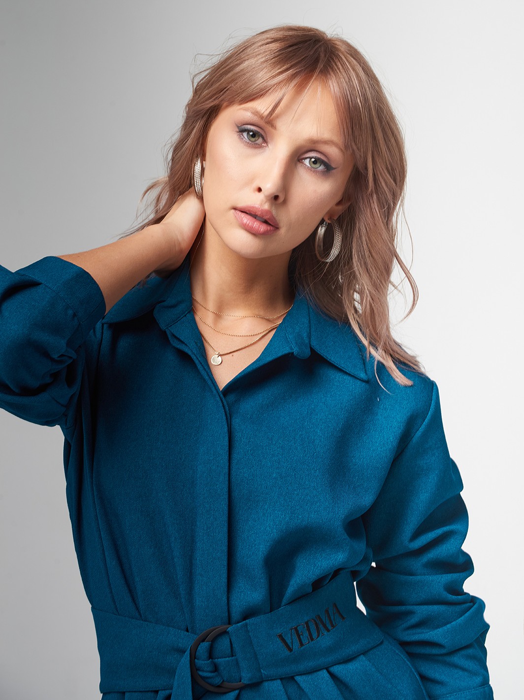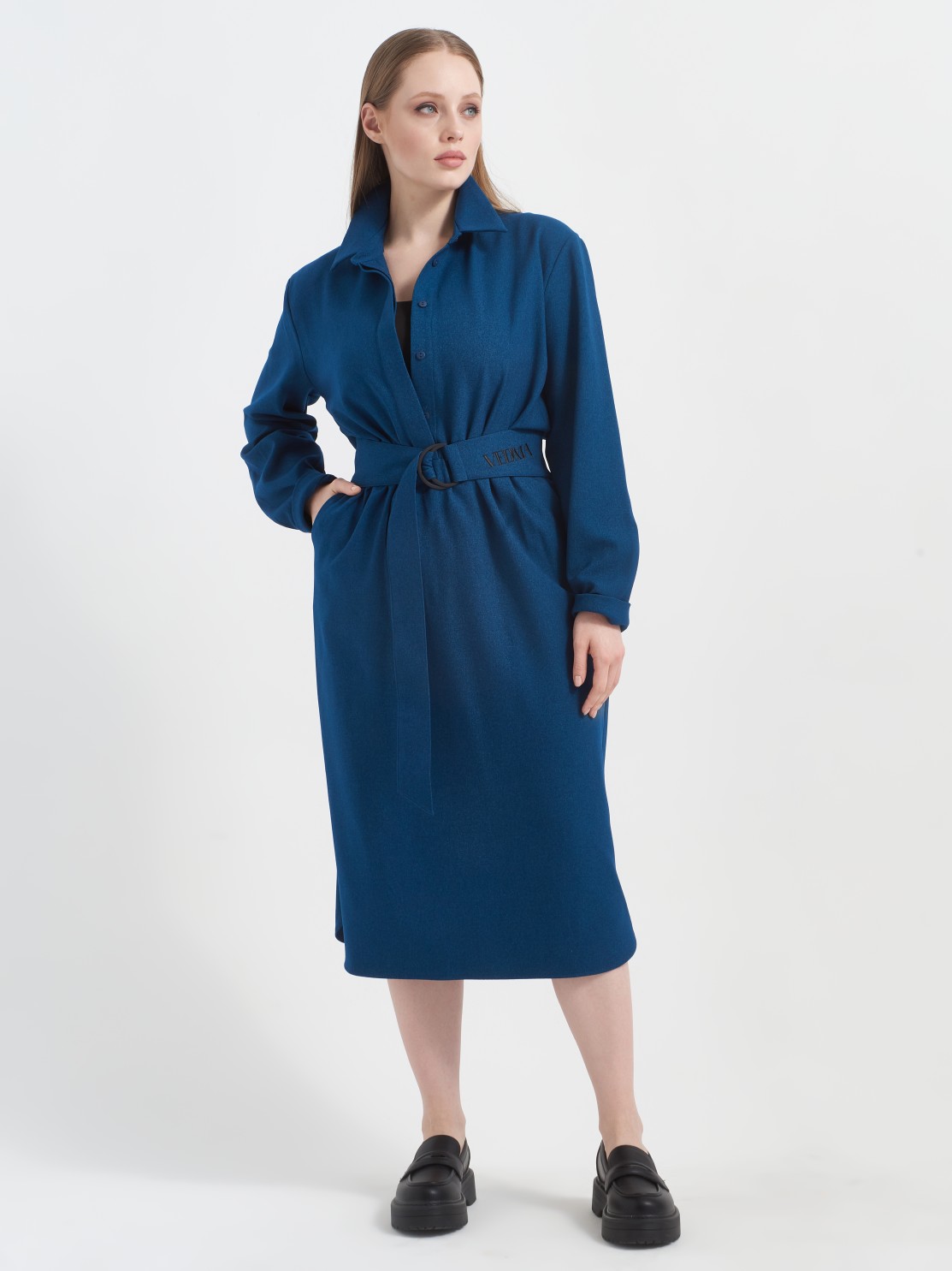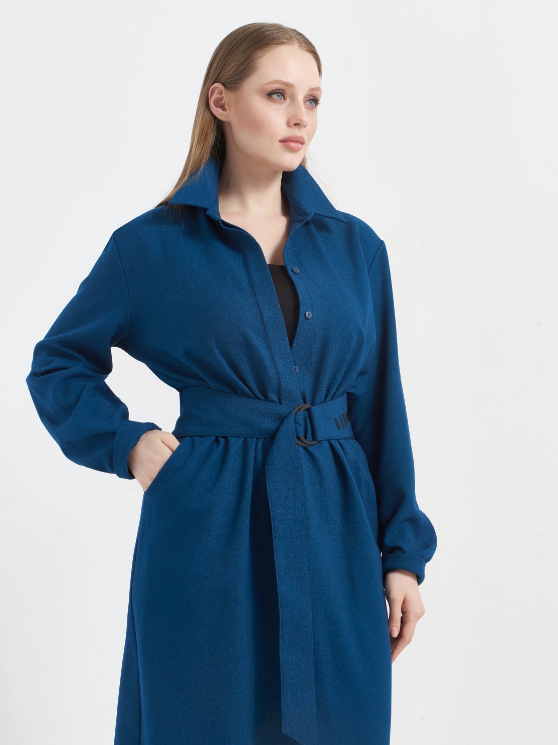 Глубокий синий цвет, очень дорого смотрится. Все швы ровные, аккуратный воротник.