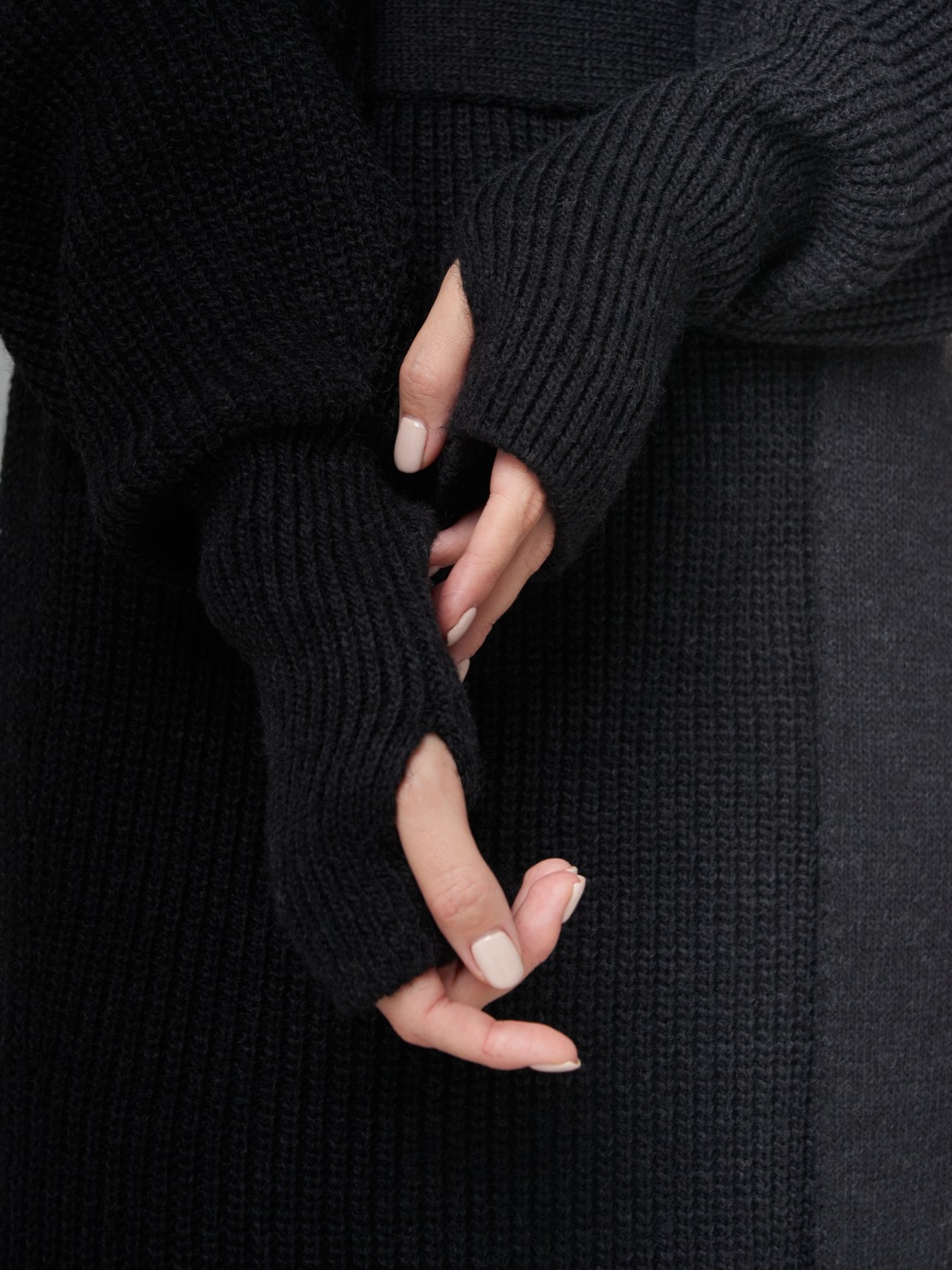 Длинное и теплое платье, очень приятное к телу, понравилось, что на рукавах есть «перчаточки» для большого пальца , выглядит очень мило!