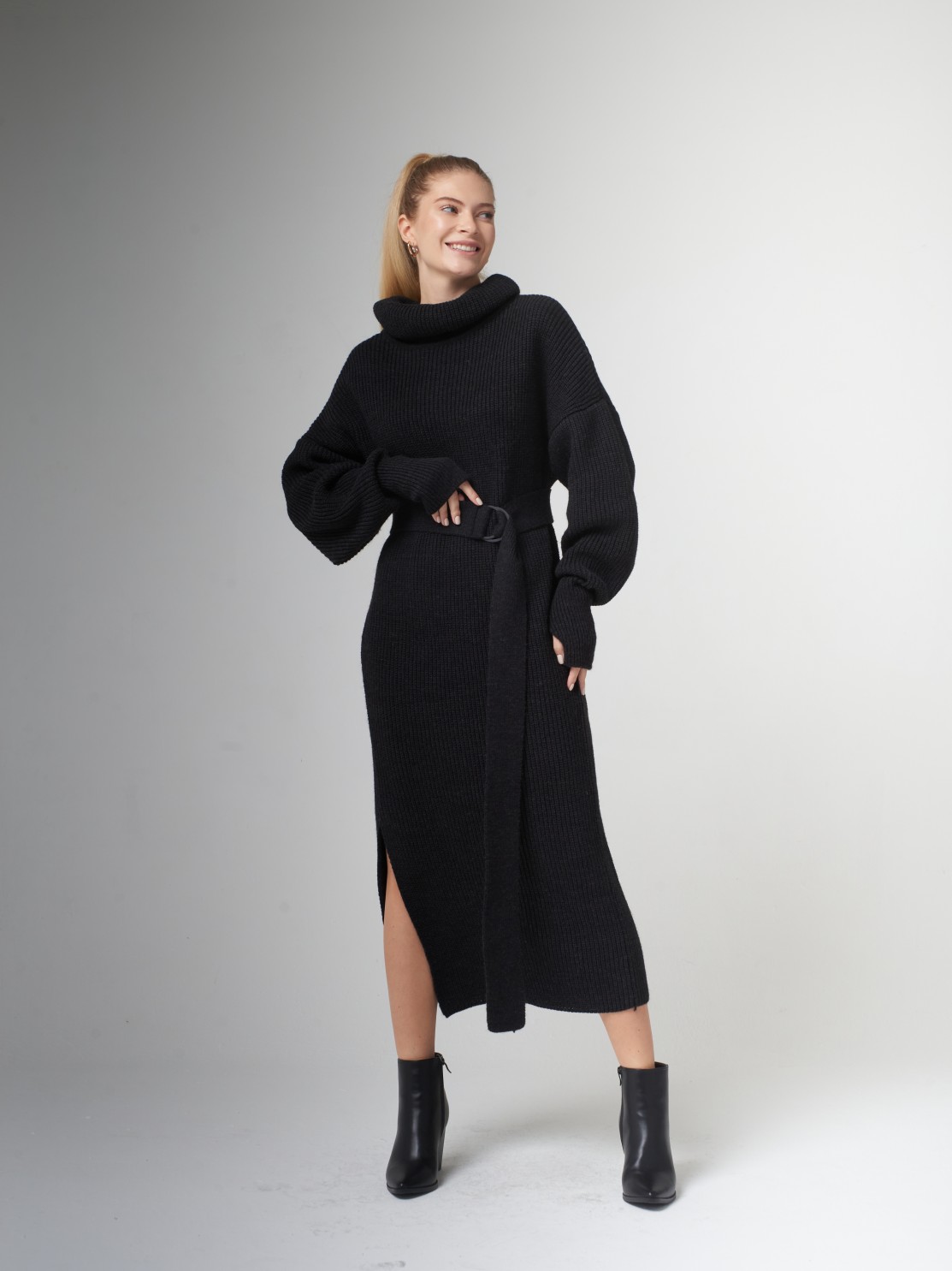 Теплое оверсайз платье, красивая вязка, насыщенный цвет.