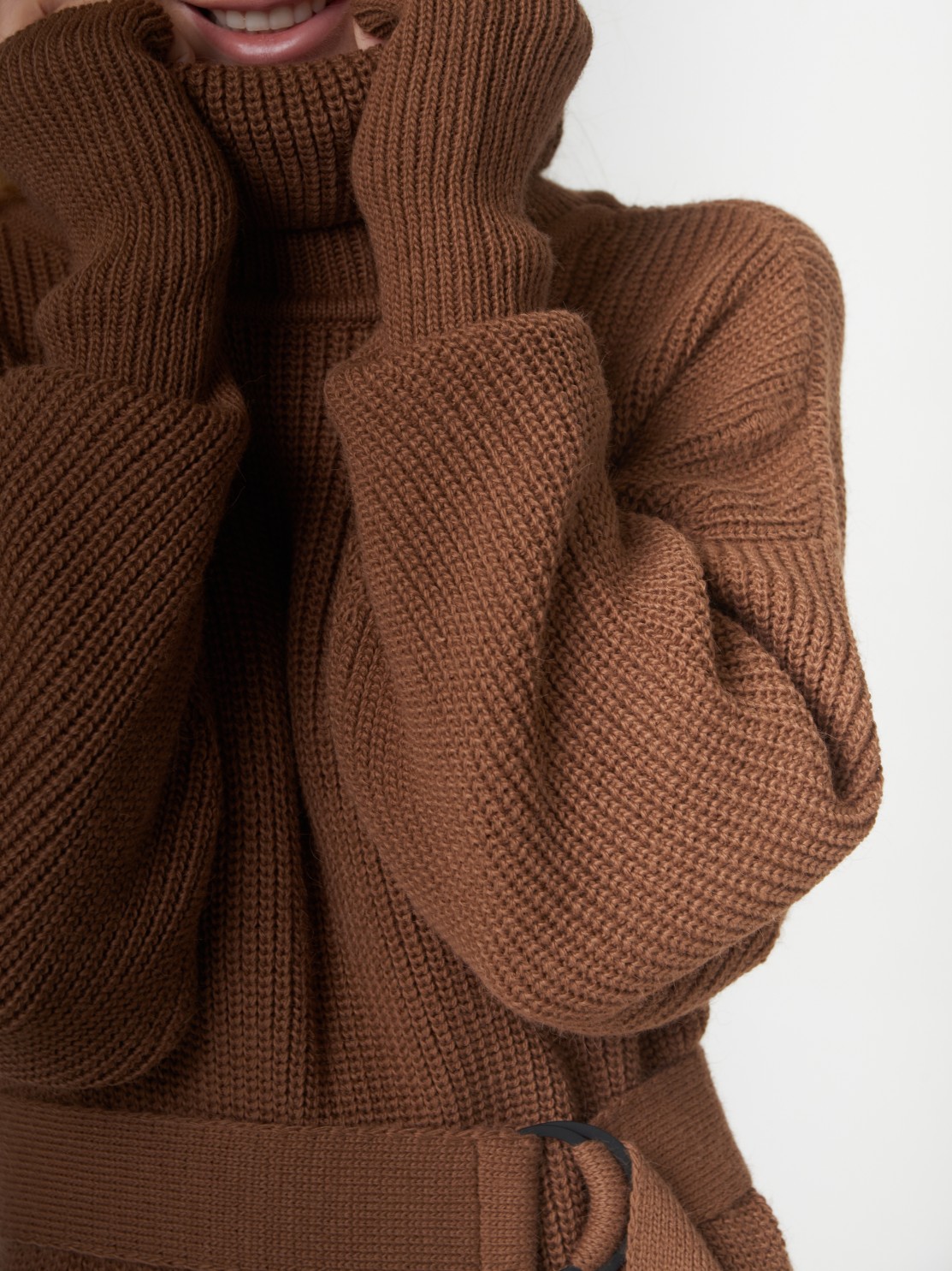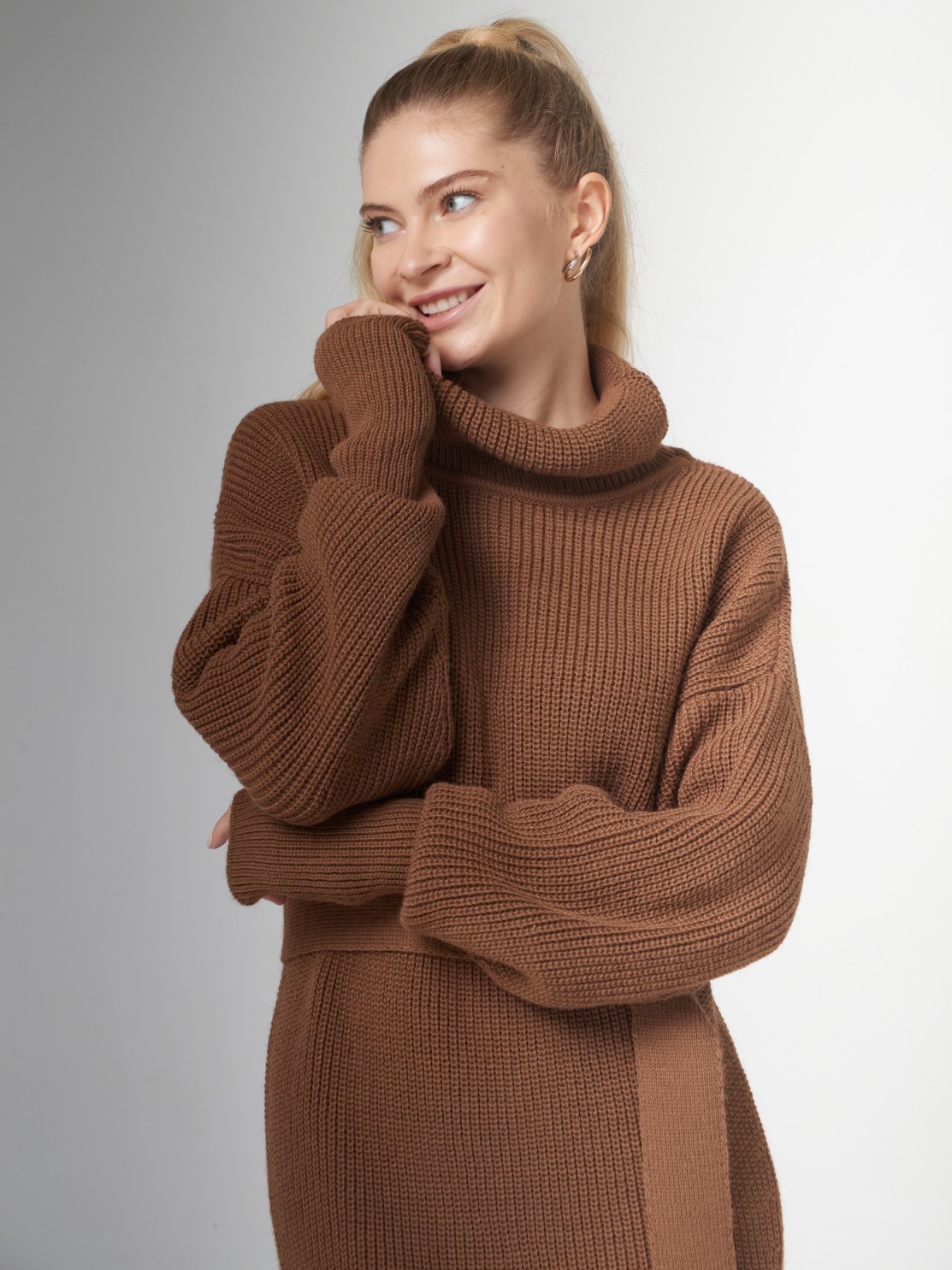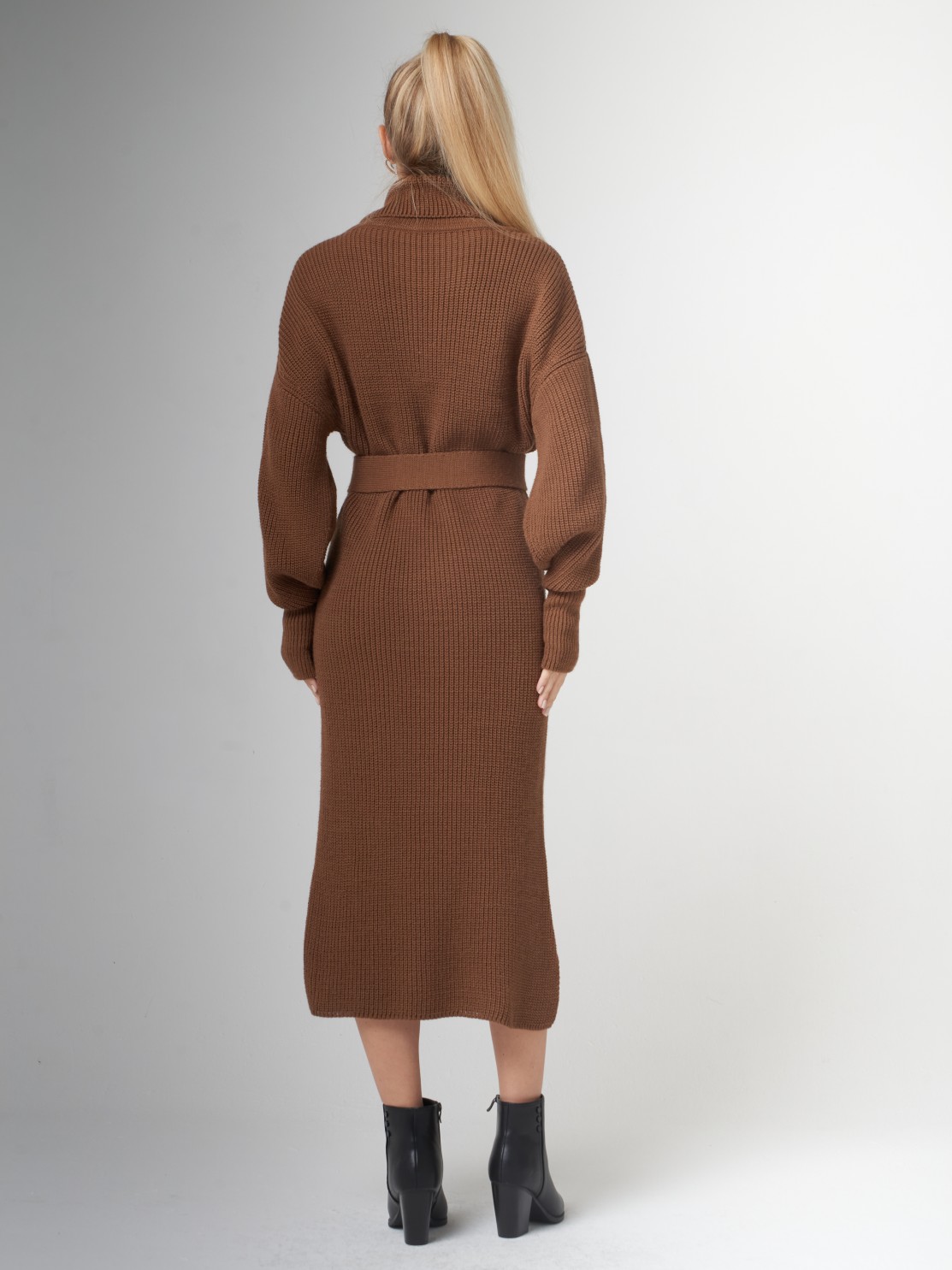 Вырез на ноге смотрится очень красиво, само платье очень мягкое и теплое, красивый карамельный цвет.