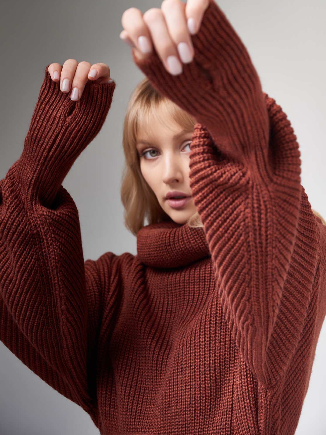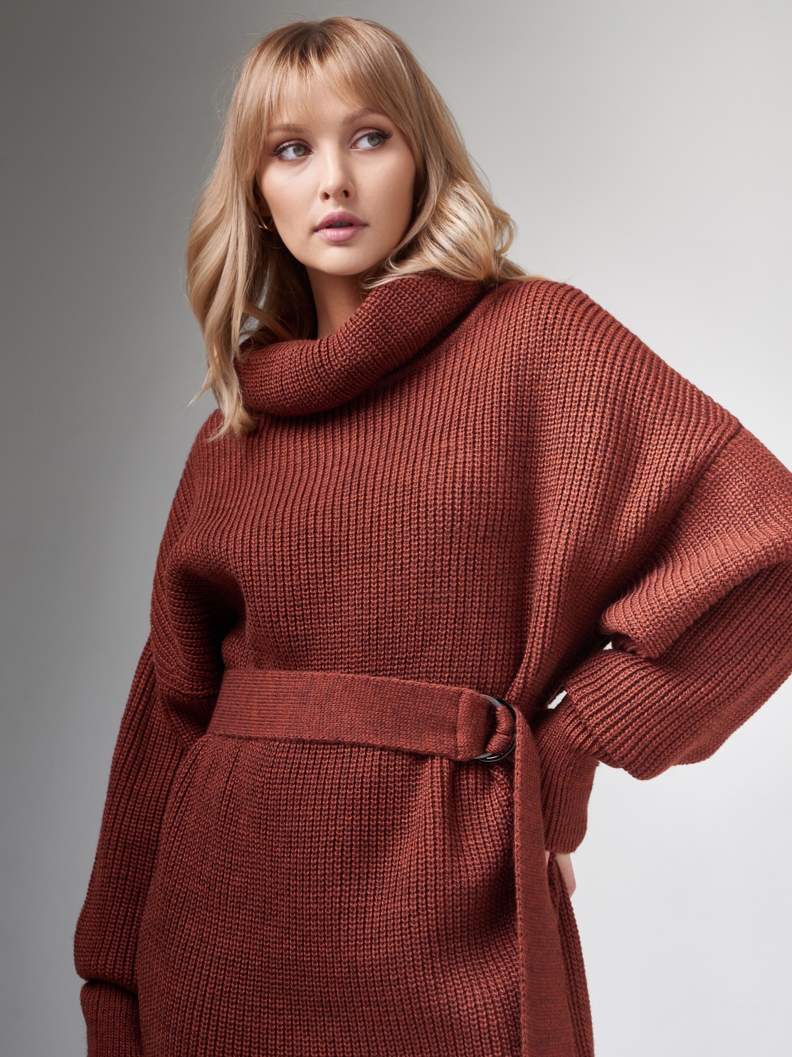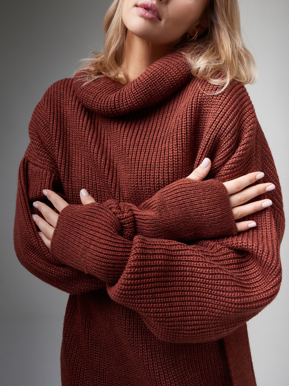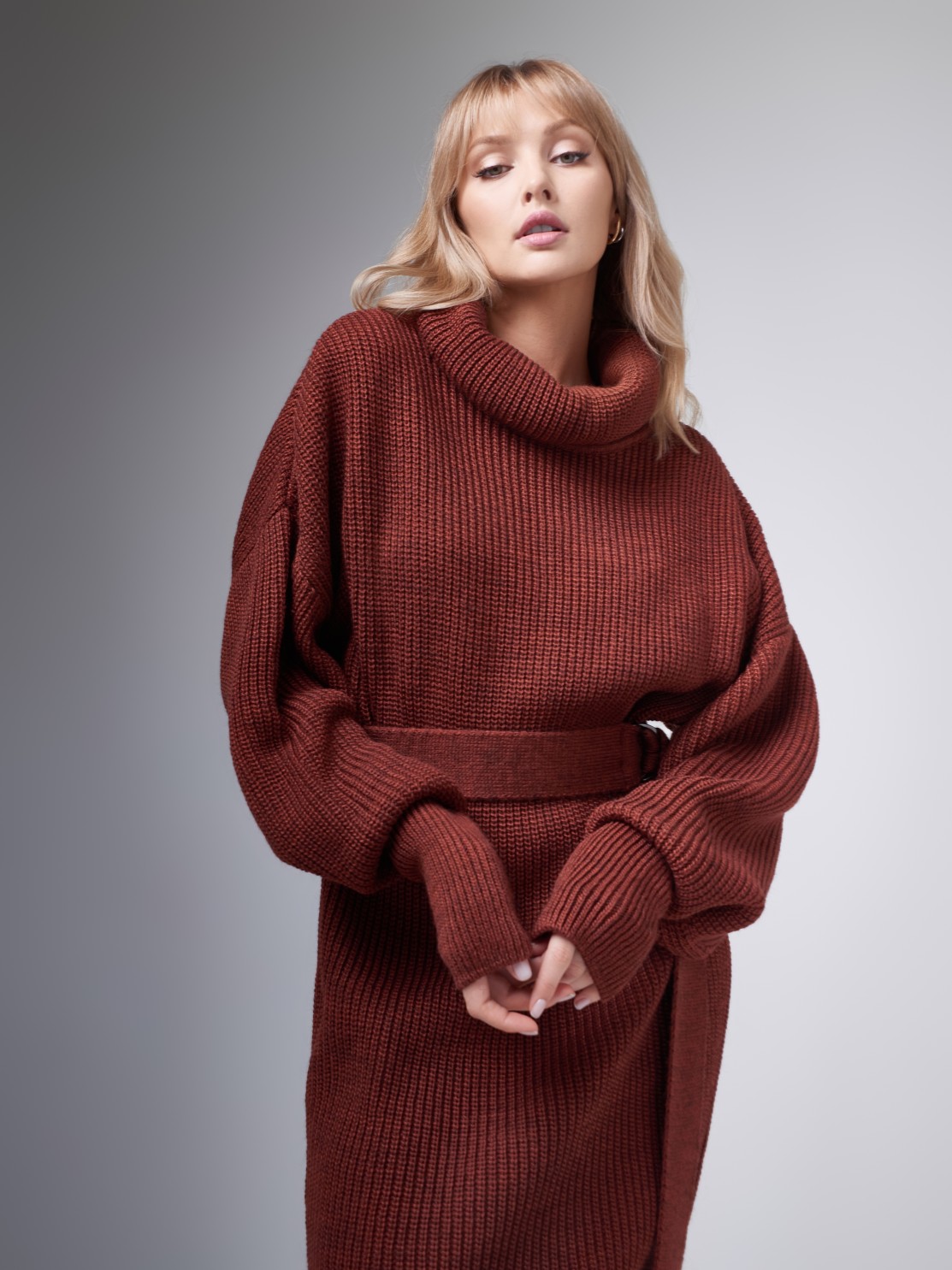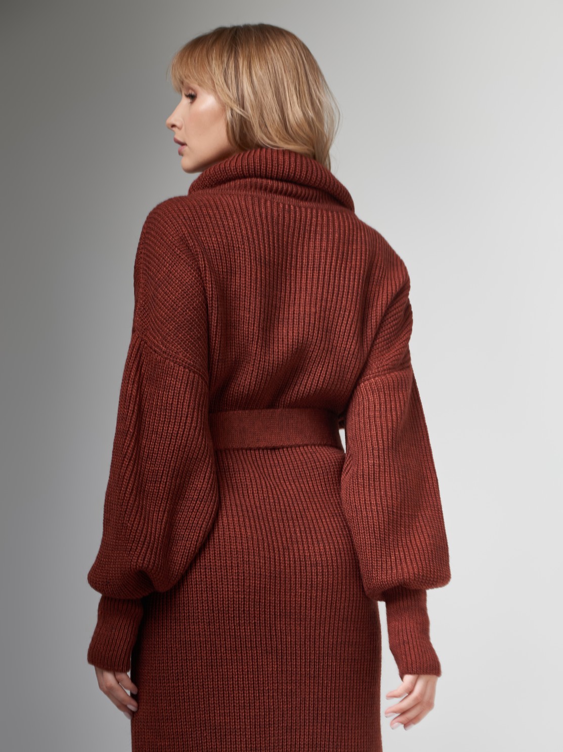 Теплое оверсайз платье, красивая вязка, насыщенный цвет.
