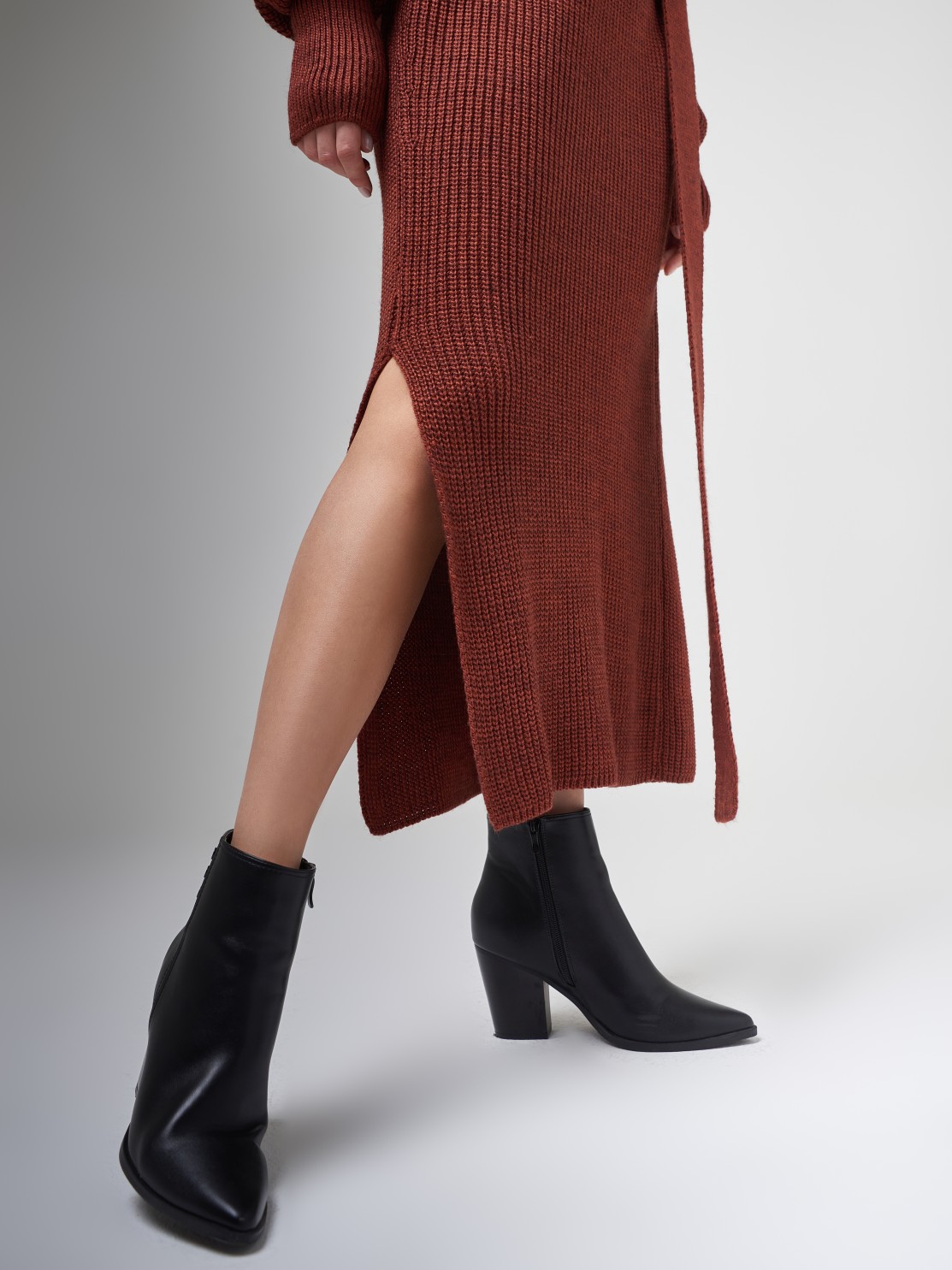 Вырез на ноге смотрится очень красиво, само платье очень мягкое и теплое, красивый карамельный цвет.