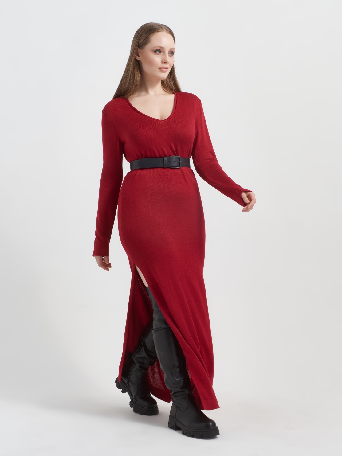 Платье макси просто роскошное, насыщенный красный цвет, вырез по ноге - смотрится просто огонь!