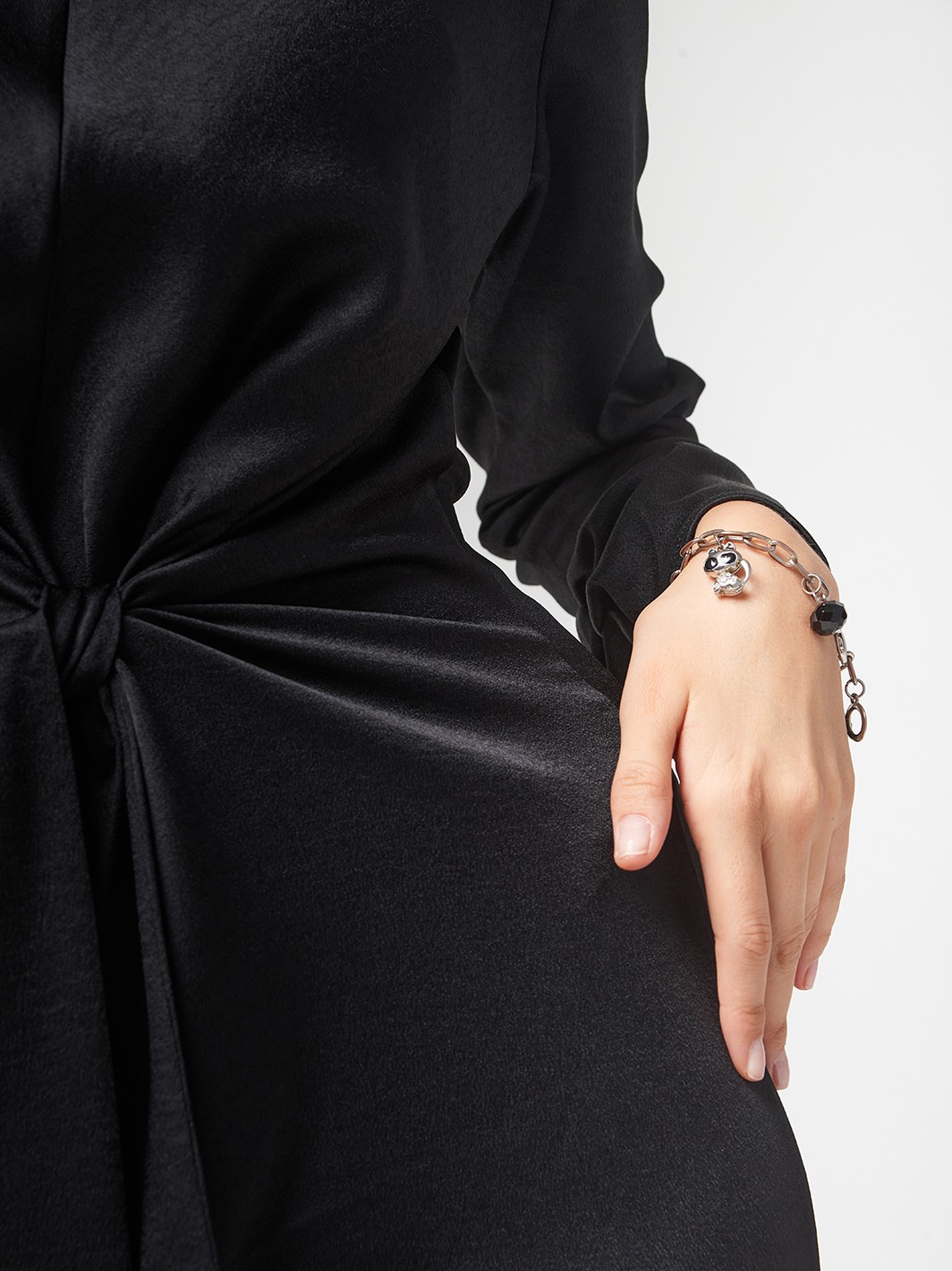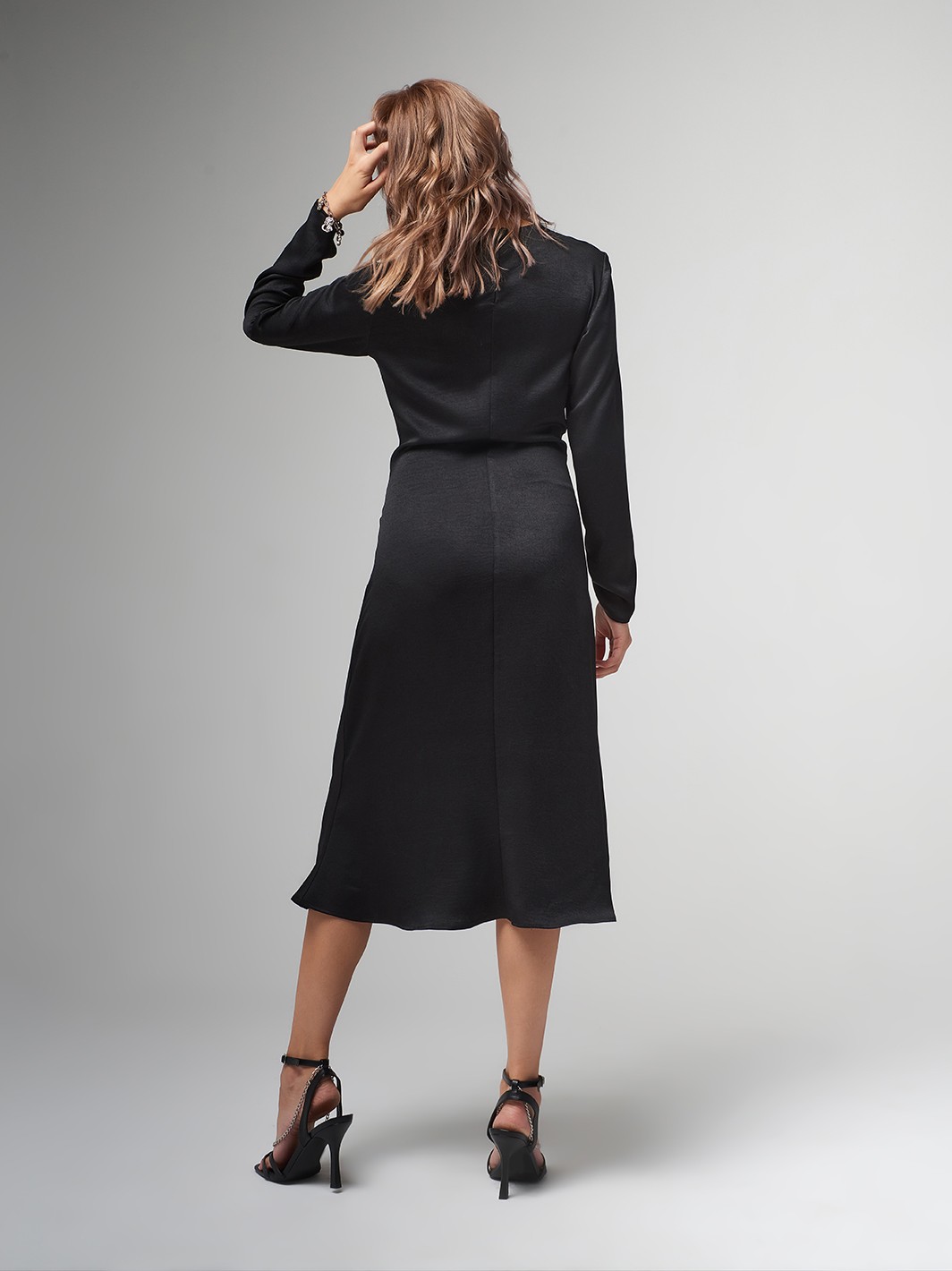 Брала себе еще и платье атласное, черное. Смотрится нарядно, пояс можно завязывать по разному , хороший вариант для праздника.