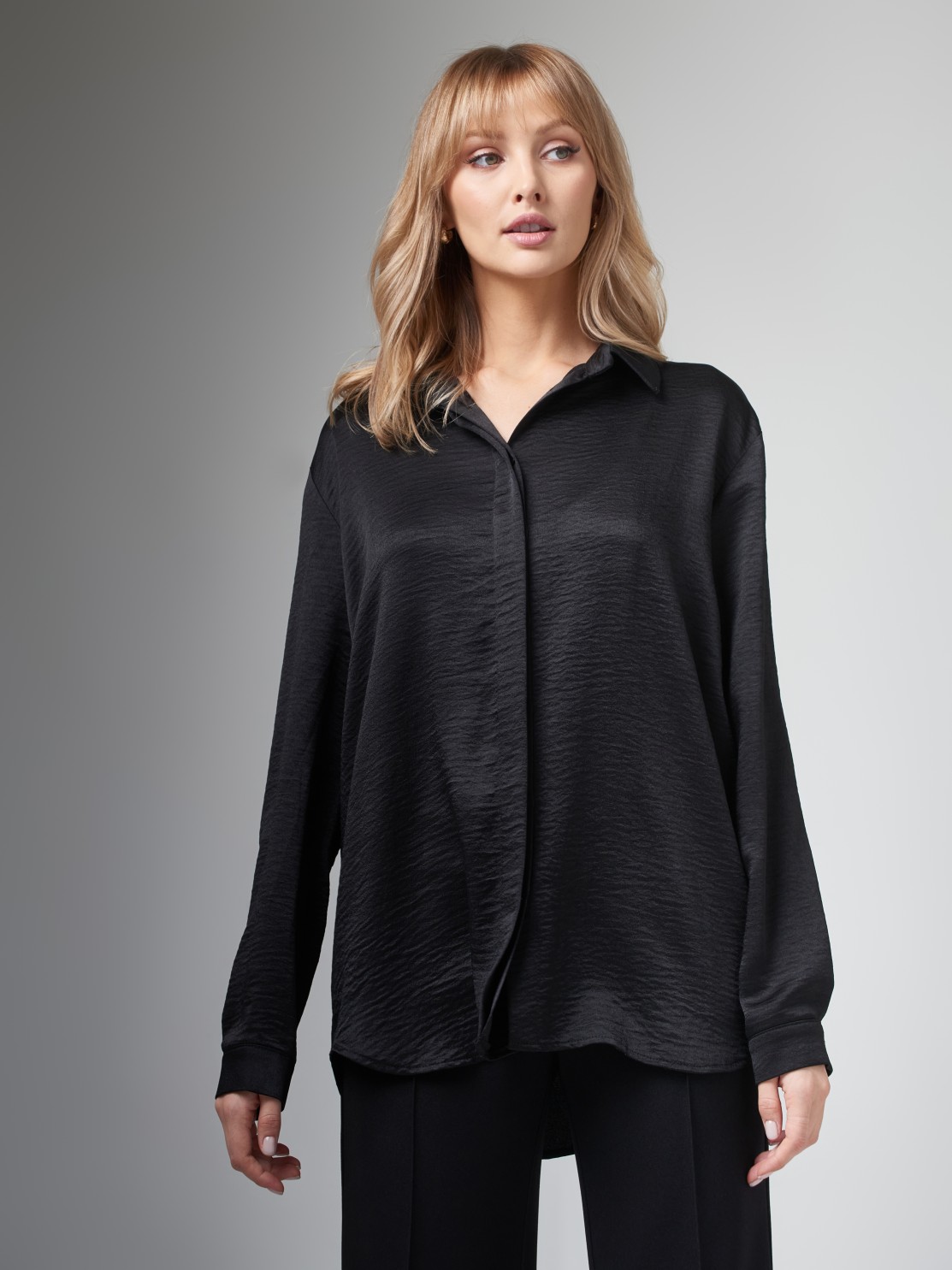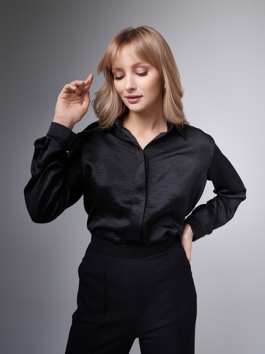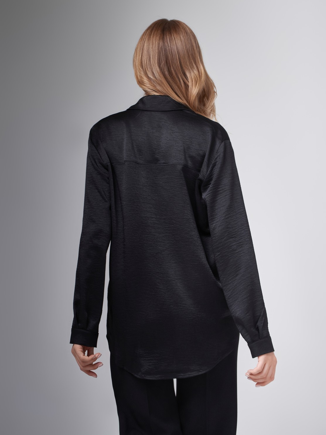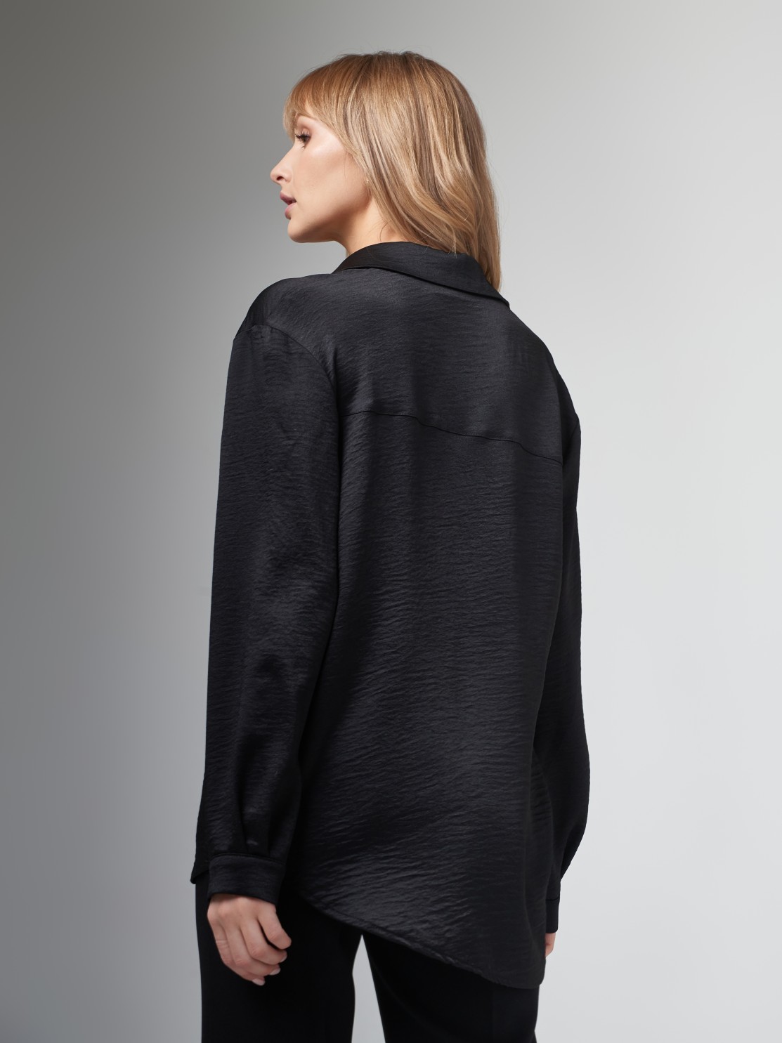Красивая рубашка, пуговицы спрятаны, атлас фактурный, цвет - насыщенный.