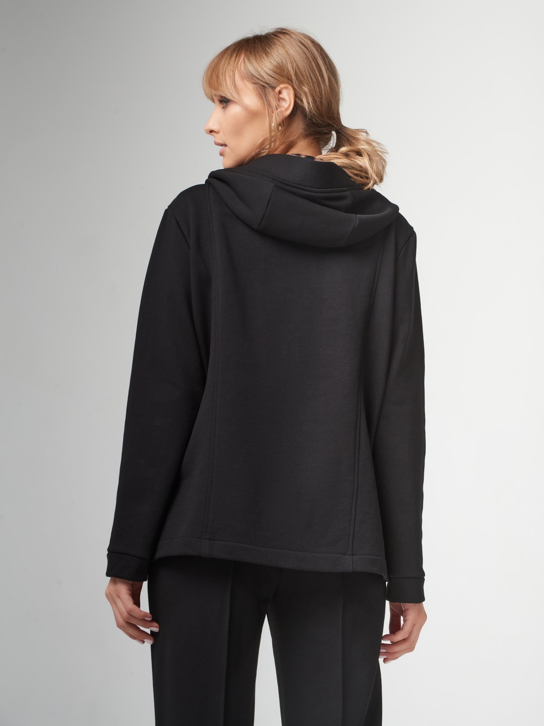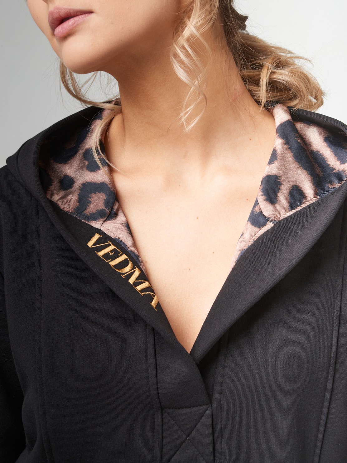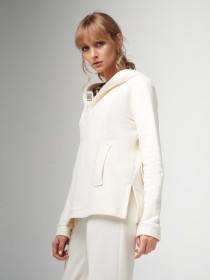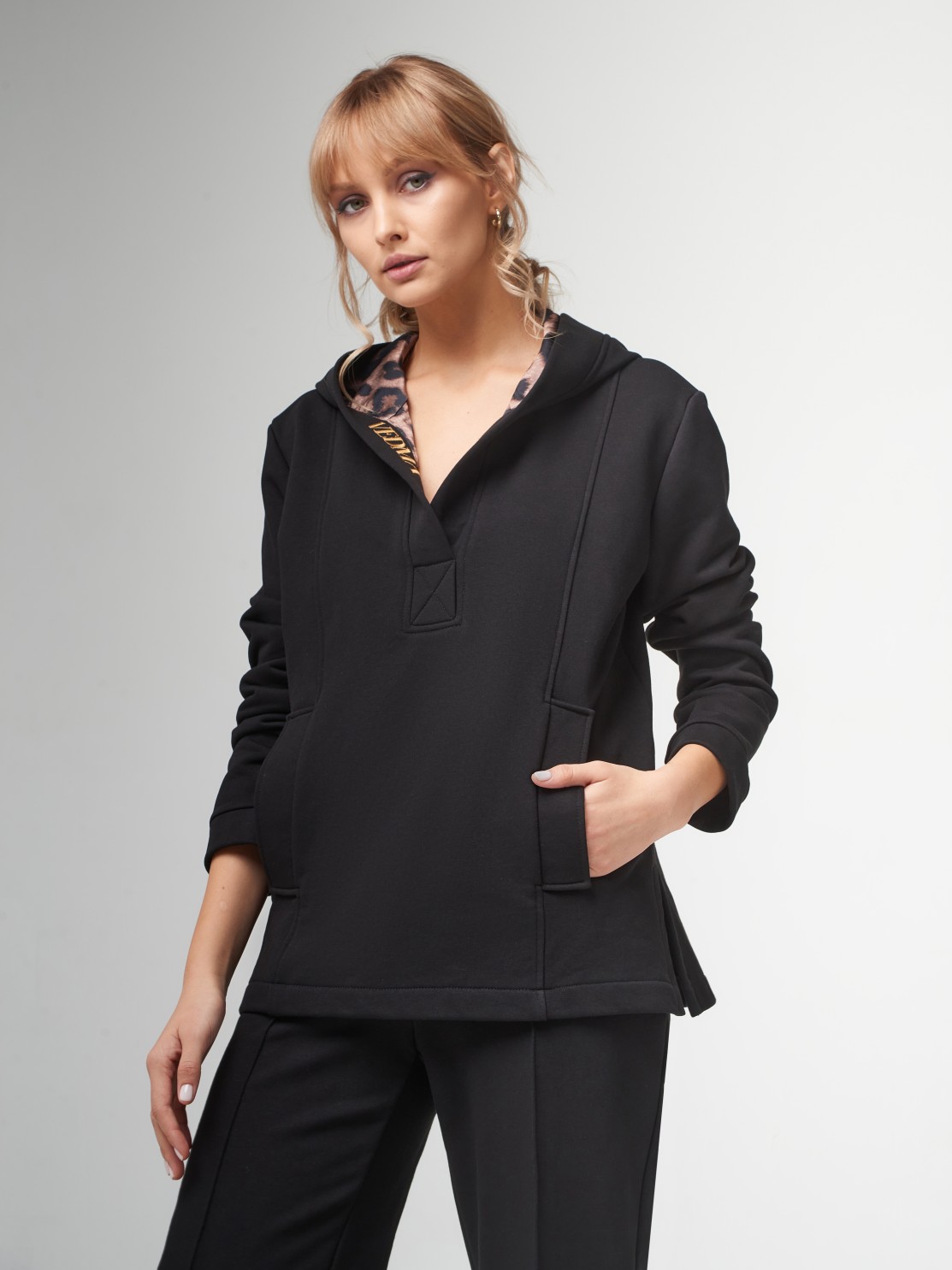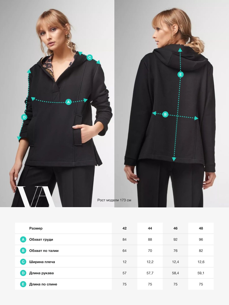 Такого худи ты ещё не видела! Элегантный крой стройнит фигуру, атласная подкладка в капюшоне и карманах. Внутренняя планка выреза украшена фирменной вышивкой.