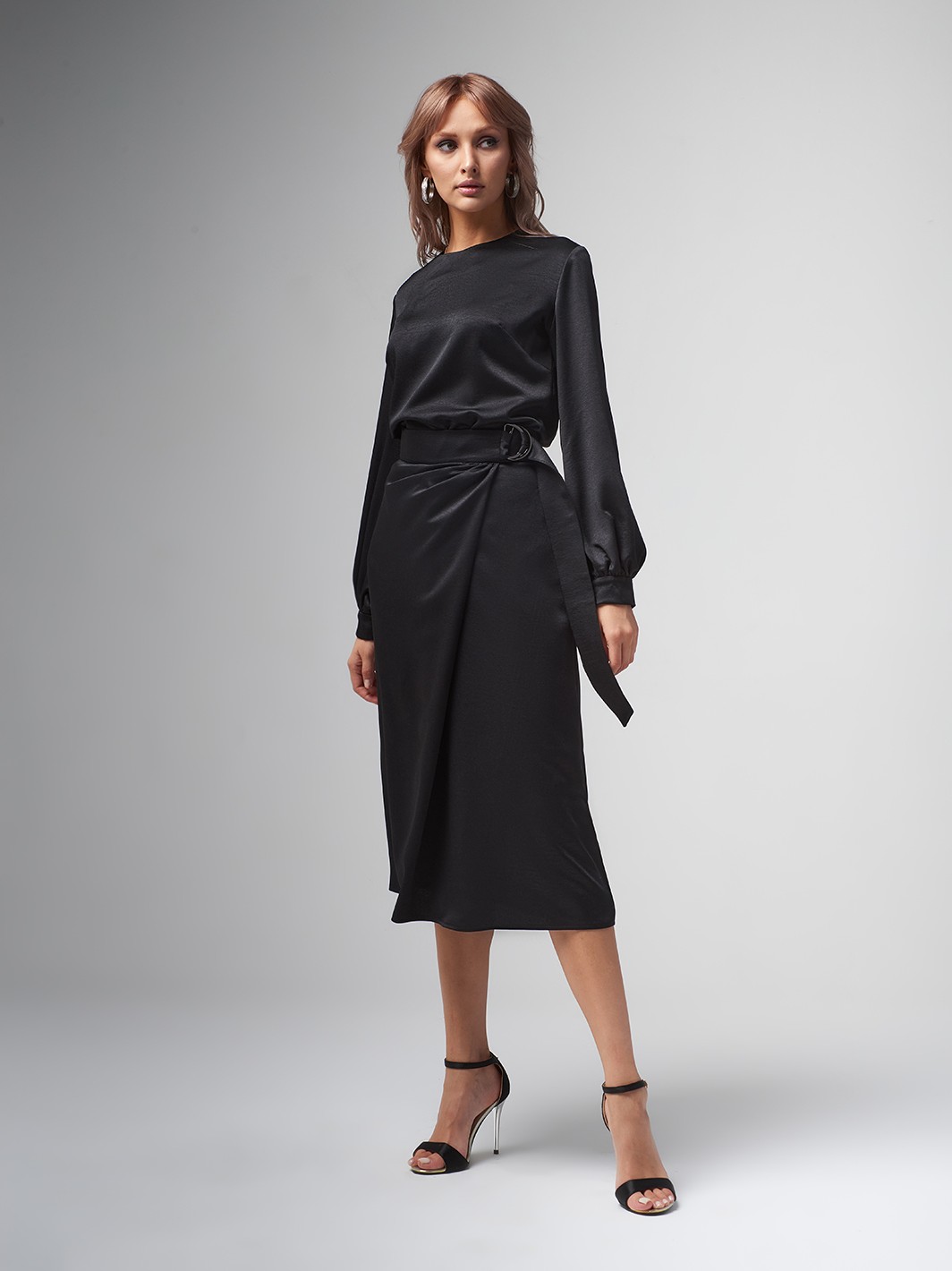 Заказала рубашку и атласную юбку в одном цвете, комплект выглядит как полноценное платье! Очень красиво и женственно.